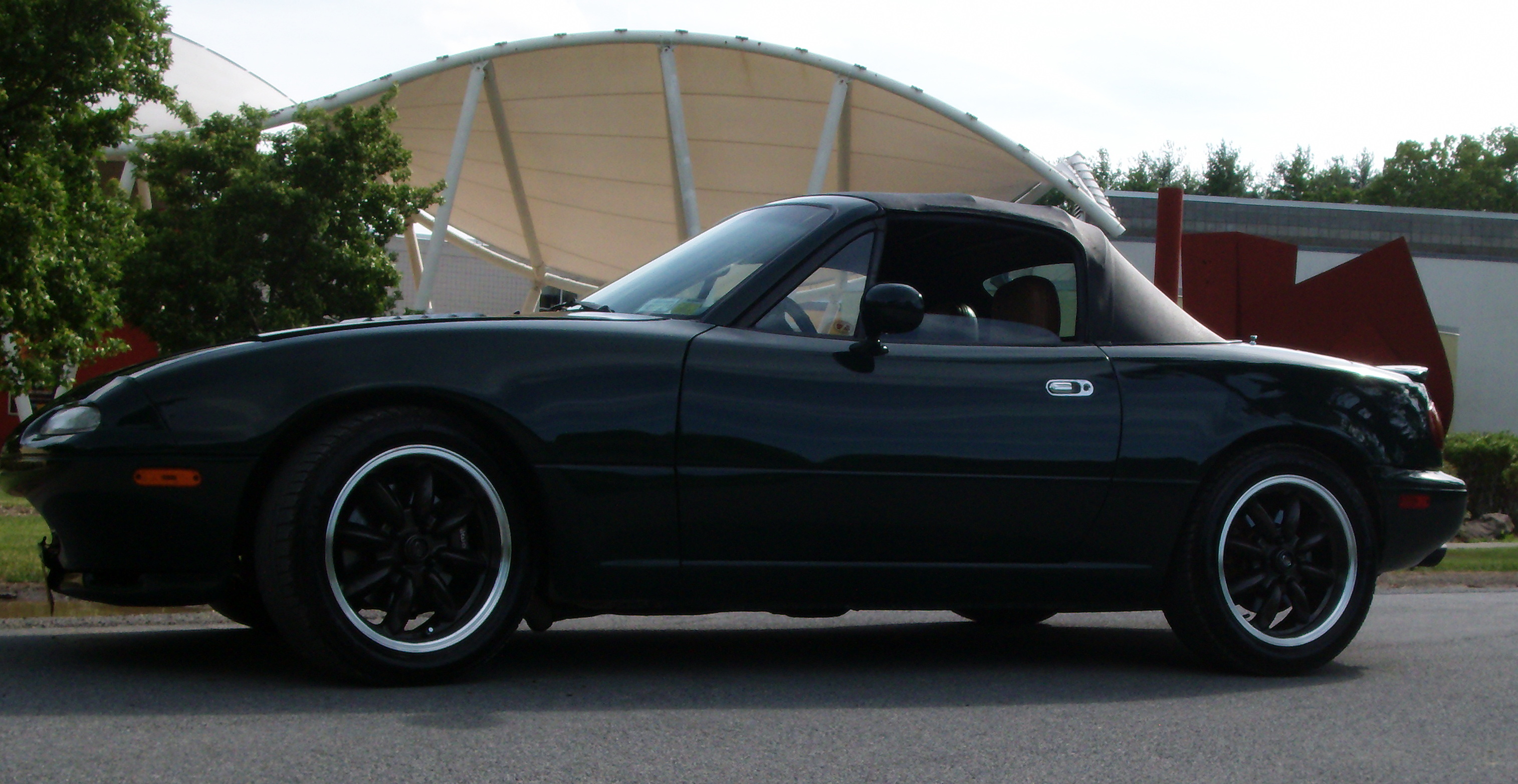 What was special? The first special edition Miata set the trend of what would be standard features for nearly every more lux Miata to come after it. There was a wood Nardi shifter and hand brake, stainless sills, AC, CD stereo, cruise control, and headrest speakers. The interior was tan leather and it came with a tan tonneau cover. The top was still black, though a hard top was an option. (This vehicle does not have a hard top)