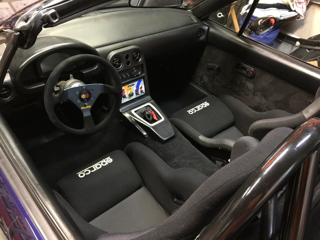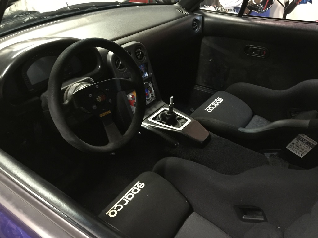 This build was a "from scratch money almost no object" build- the goal being an amazing track toy. I took a clean, straight 1993 Miata and stripped it down to nothing. Literally everything was removed to save weight. Then, using components from V8Roadster.com a 2012 LFX motor, 6 speed transmission and G80 Limited slip differential were installed. A New OEM dual plate clutch and flywheel, AIM MXL Pro Data acquisition system with GPS track mapping, a carbon fiber Sparco seat... and SO much more. The final result is a car that weighs 2200lbs (with me in it) and has 350hp. The car pulls hard all the way to a 7200rpm redline and the torque curve is flat. You will surprise and embarrass drivers in much more expensive vehicles. Over $25,000 was spent building this car and I did all of the labor (so that's free). I've been involved in racing and cars for 20+ years and everything was done to high standards. IE- all of the suspension components were removed, sandblasted, painted, new poly bushings installed, new ball joints/ rod ends. There is not a single bolt on this car that was not replaced/ cleaned/ torqued. I have pictures of everything and would be more than happy to discuss any aspect of this build on the phone. One track day and some street miles after being built from new. The only reason I am even considering selling it is to build another project... Some of the pictures were taken during the build. The car is complete, running and ready for the track. I've done one track day and a few street miles since the build. It does not have lights (beyond brake lights), AC, heat, or power anything.