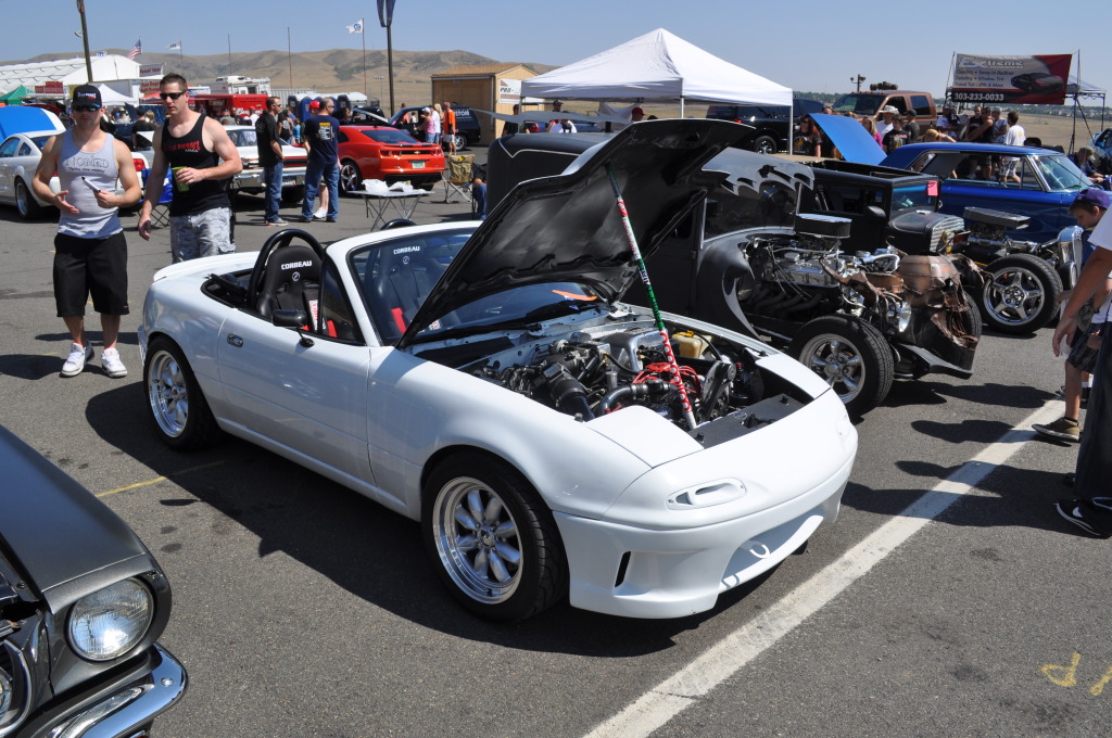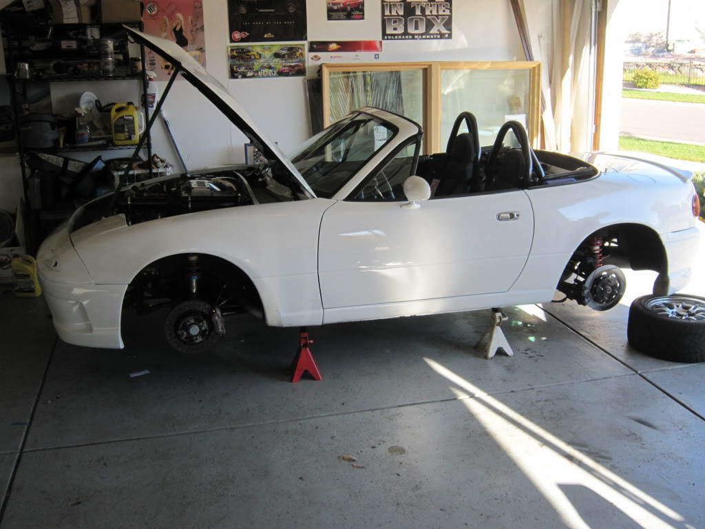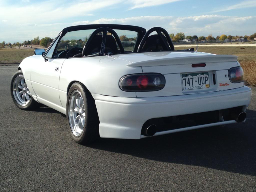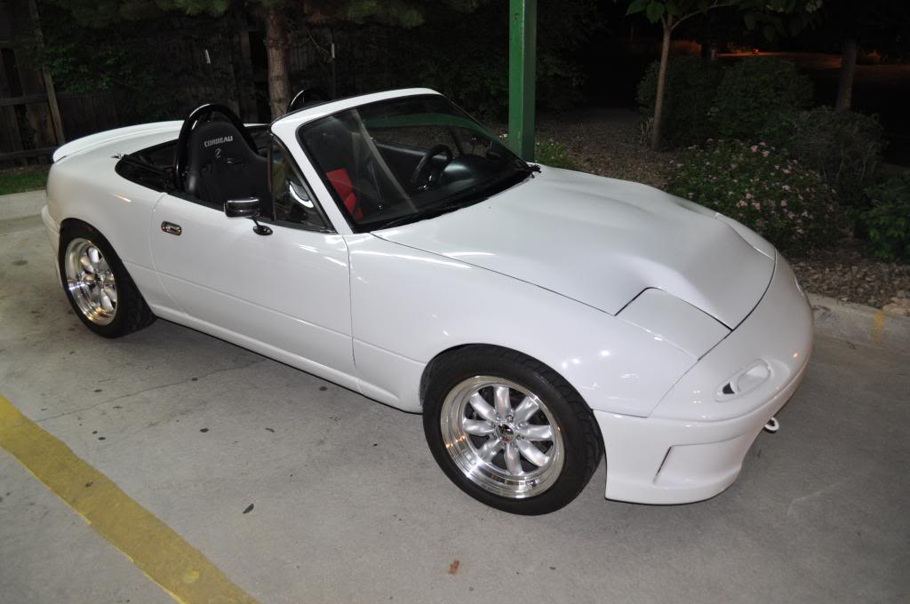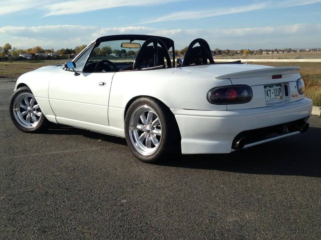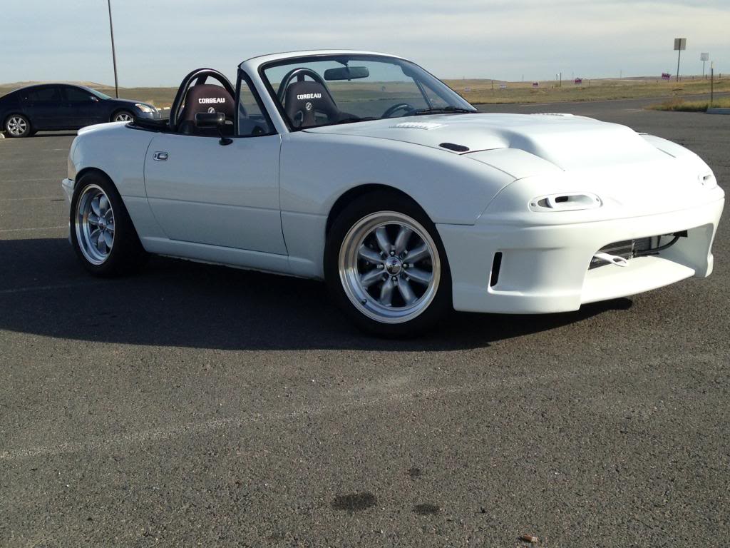 The car is completely done; there not much more you can do to the car. Engine. Completely rebuilt 331 CI stroker SB Ford- Block was fully machined-bored, line honed, decked and fully balanced * Full forged internals * Trickflow top end kit- Double roller timing set, Trickflow cam, Twisted Wedge heads, Trickflow push rodes and roller valve train. *Kenne Bell Supercharger- comes with a 8lbs and 10lbs pulley *AFE Water Methanol Kit (used as a chemical intercooler and not tuned for. If tuned it would add about 15-20 WHP *GT40 intake manifold (works with the supercharger) *MSD Distributor and coil *93 Ford Mustang ECU with Diablo Chip *Custom Tune putting down about 385 WHP and 410 ft lbs- There is plenty more if you do a new cam (designed for the SC) and tuned for the water/meth. *Ford Racing plug wires *BBK high flow fuel rails with BBK regulator *Ford Racing 30 lbs. injectors *Dashwerks 255 lph high flow fuel pump *BBK 75 mm throttle body *BBK 75mm mass air for 30 lbs. injectors *Ford power steering pump (Not Miata) *Ford Lightweight Crank pulley *High flow water pump *high flow oil pump * Race aluminum radiator *Optima yellow top battery *Flying Miata air flow kit (moved the radiator forward to place the fan behind the radiator in the engine bay. New high flow fans and shroud). This thing will run cool in trafic on a 95 degree day. With the fans in the front of the radiator it didn't move enough air to keep cool in traffic. *Other than that air pump- the car is fully setup to be carb legal. The air pump can be easily add and will include one with the sale. *Royal Purple throughout the drive train and have always ran it. I run Z Max every other oil change. *No AC *Power Steering Exhaust. *Monster Miata headers *Magnaflow high flow cats *3" exhaust *Flowmaster Super40 mufflers *Magnaflow polished tips *true dual exhaust Drivetrain * Brand new lighter than stock fly wheel * Centerforce dual friction (organic and kevlar) clutch and preasure plate *Tremic T5 World Class 5 speed (purchased bran new and not rebuilt) * Stedea short throw shifter * Fully rebuilt 7.5 ford rear end *327 Gears- new with the rebuild *Ford Racing limited slip-New *stronger u joints in along with the upgraded half shafts Suspension and breaks *Willwood big brake kit for front with drilled & slotted rotors- Willwood street/track pads *Goodwin Racing big brake for the rear- 93+ caliper to retain ebrake. Slotted rotor with upgraded street/track pads *Brake proportioning valve *All stainless steel lines. *Flying Miata V-Max fully adjustable coil overs- Upgraded to the NB setup suspension *All bushing were replace with Energy Suspension Poly bushings *All 4 wheel bearings are bran new *Strengthen upgraded front sway bar mount *Racing Beat adjustable end links *Racing Beat hollow sway bar for the front *Racing Beat solid sway bar *Comes with two sets of rims and tires. Street rim/tire setup is 16X8 XXR rims with BFG tires-75% tread left. Track setup is 949 6UL's 15X8 with Hancook tires & Blox lightweight lug nuts- Tire have 50% tread Chasse/Body *Boss Frog -Frog arms chasse brace *Boss Frog dual hoop roll bar *Boss Frog harness bar- increase chasse rigidity *DuraFlex Wisdom body kit-Front and rear bumpers-no side skirts but do have them and are painted and ready to go on. (stock bumpers are easy to put back on if desired) *Custom Hood- to clear the supercharge pulley *Louvered in hood for additional cooling *Flush hood pins *Car was completely painted at time of build-has a few rock chips but paint is in great condition. *Corbeau Racing Seats *5 point harness * New smaller diameter steering wheel- Makes a difference for the taller guys and helps on the track. * Autometer gauges and gauge cluster-Boost, water temp, oil pressure and volt meter *Pioneer stereo-iPod *4 channel amp *New Hyphonics door speakers * 10 Sub in the trunk- Removable for the track. *Comes with Mazda Miata Car Cover *Soft top was replaced right before I bought the car and is in great condition- Top that was put on came with a larger that stock, glass window. The car is completely sorted and has about 12K miles on it since it was done.112,000 total miles.I did the actual swap itself but the engine, tuning, paint, exhaust ect was done by Mustang Motor Sports here in Denver. I have had zero problems with the car and is very reliable. The thing I love about this car is that it does everything well. You can daily drive it, track it, auto X or even run it down the strip. It stops on a dime, handles like it’s on rails and is very predictable. This car is just pure fun. There is no way you can get out of the car without a smile on your face. The only issues on the car is that when doing the break proportioning valve, some brake fluid got on down in the engine bay below the master cylinder and some paint is flaking. There is also a very small leak at the rear main seal but is ever so slight. Not even enough to make a puddle but just enough to notice. A bottle of leak stop would probably fix it. The car does have salvaged title. Was hit and the damage was to the rear bumper/trunk and the body work/paint cost was more than the car was worth so insurance totaled it. The owner bought the car back on fixed it. Everything is straight on the car (had is checked before I bought it) and was in great condition when I bought it. If you are interest let me know and I can send you some pics. Asking $19,500 and have over $27,000 invested. Thanks Ron |