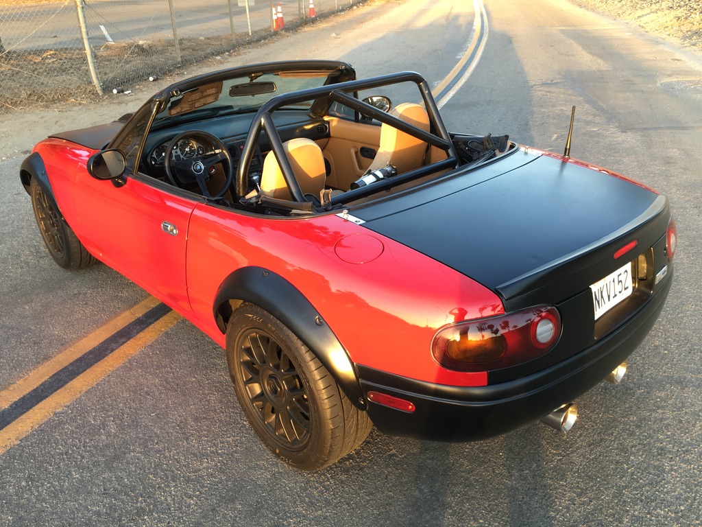 https://www.v8miata.net/members/mrm3...-4954-1132.jpg https://www.v8miata.net/members/mrm3...-4950-1131.jpg https://www.v8miata.net/members/mrm3...ender-1130.jpg The album can be found here: v8 Miata Forum - Home of the v8 Miata Conversion - MRM331's Album: Ryan Bush's Car Ryan tells me the pictures of the car with the flares and bumpers painted red are the most recent. Please contact him with any questions or offers, I'm just the guy posting up his pictures. |