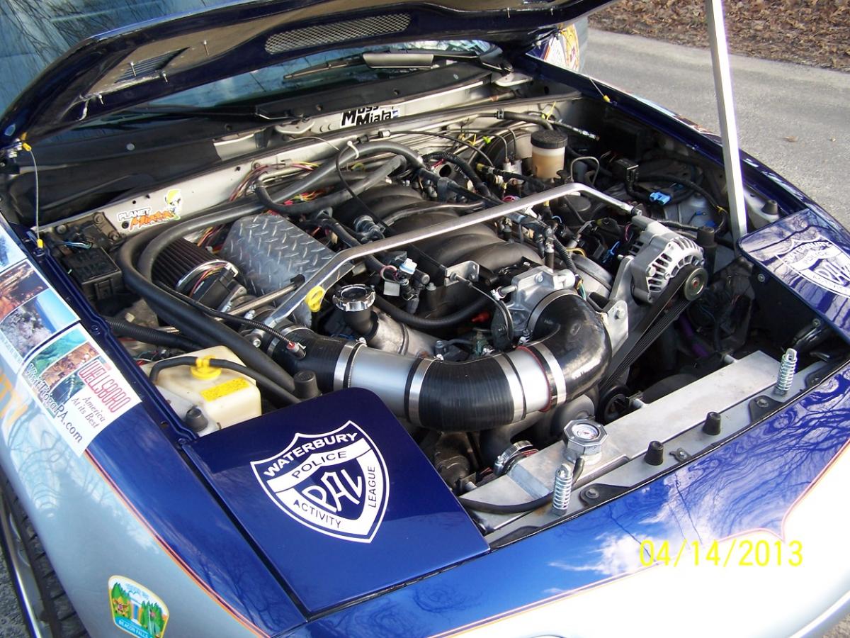 1990 Miata, 99 Vette LS-1 <50k miles, F-body T-56, 04 Cobra 8.8 3:73 Trac-Lock diff, Wilwood brake kit, Boss Frog everything, Painless Harness, PS with Miata pump and rack. Car ran great and has a history with the Fireball Run Adventurally 2012, time on screen in the movie "Northern Exposure", Full page in Car Craft Magazine 2/14, and featured at the 2014 NYIAS as part of Mazda NA's owner's slideshow.