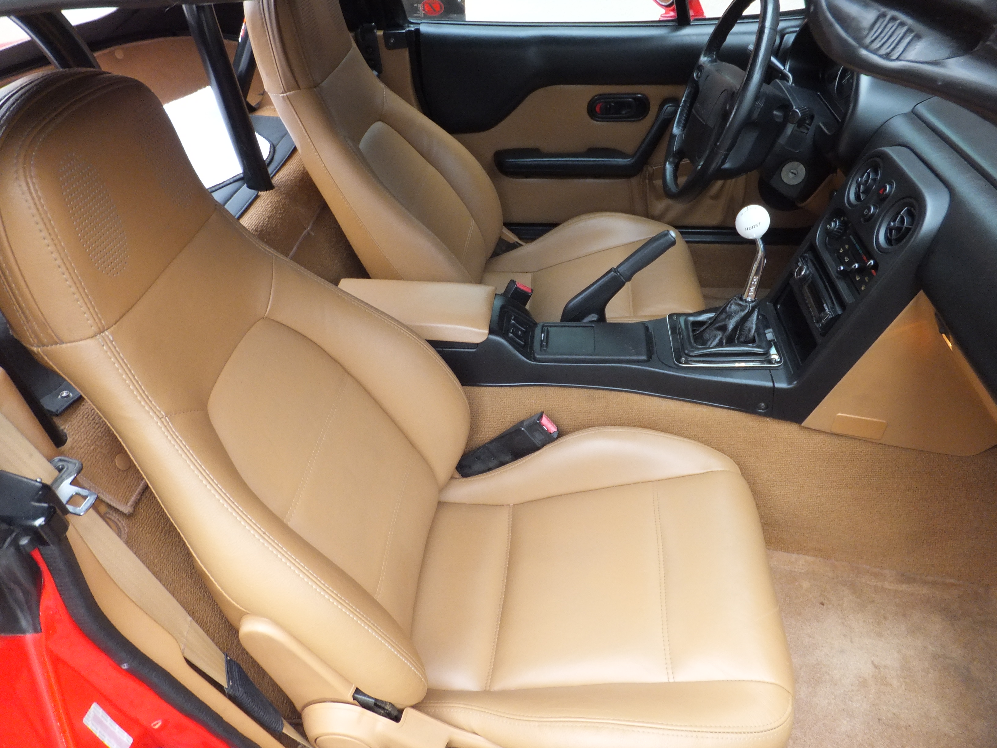 -Interior has Tan leather seats. Tan and Black dash and door panels. All