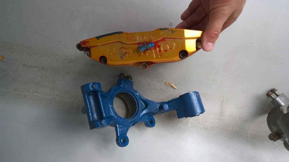 I chose a number of copper colors to test, but the first turned out nearly grey. It was supposed to be bronze. I also have burnt orange and a gold color. Also tried a few blues (didn't get the right hue) and my favorite, the VHT Burnt orange metalic. As well, I'm getting quotes on the wilwoods for re-anodizing a similar color, with white lettering. My photos are are attached of my experimental colors.