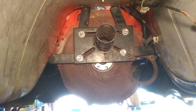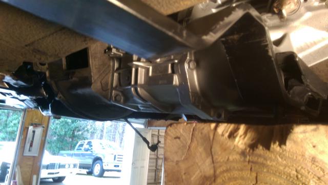 Used a Fox body bell (no clutch/pilot bearing so input shaft could go all the way into crank shaft) and set the trans member at the 3 1/2 mark from seam per Martin's manual. This gives me the approximate front to back alignment.