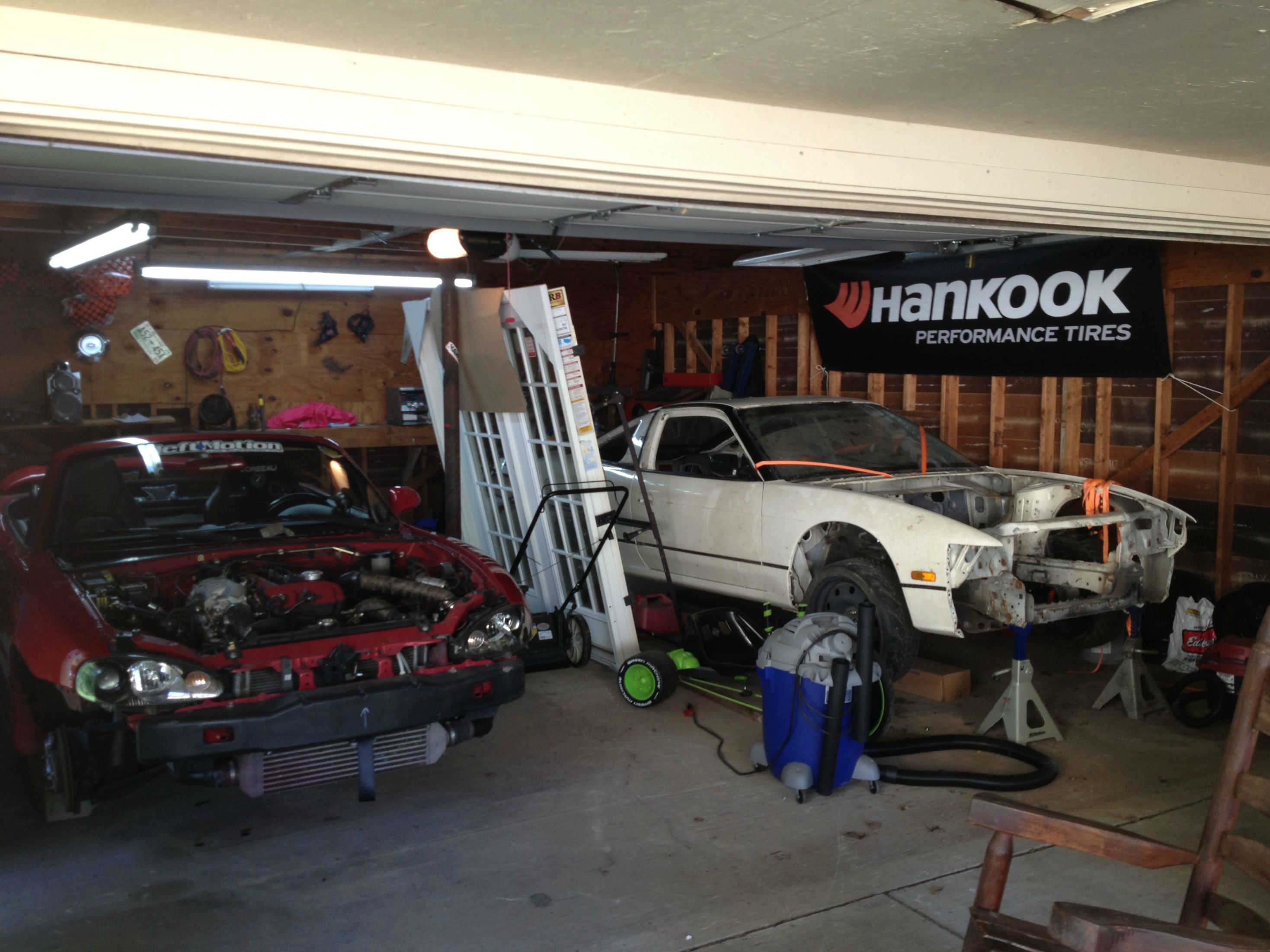 The decision came one Sunday night and I just started to tear into it. Rip the band-aid off if you will. Here is the car before the teardown... Attachment 8825 Just another fun shot of my buddies Turbo 1.6 NA and mine... Attachment 8826 Another issue I had to work out was what motor do I put in this thing. I decided on the Ford 302 for a few reasons: Price - I am awaiting pickup on a complete swap from a 93 Fox for $600 cash Parts - aftermarket parts a reletively cheap for the 302 compared to a LS motor Simplicity - the electronics on the older 302 is much simpler and is easier to work around. I.E. no passlock system and what not. Different - To my knowledge, a 302 swap hasnt been done to a Mazdaspeed. Yeah I know its not a big deal, but for me its a personal plus. Here is a shot of my garage... dont mind the mess, its much cleaner now... Attachment 8827 The 240 is a buddy of mines drift car build... its getting a SBC. I got the engine out in a matter of a couple hours (working solely on my own) :yippee: Attachment 8828 All out and ready to part with and ship across the world! This is a big chunk of my funding for this build. Attachment 8829 |