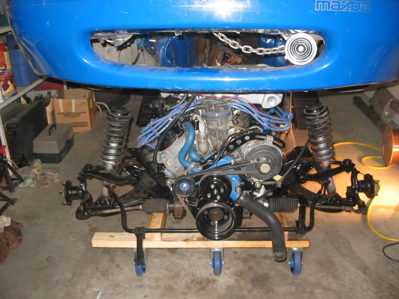 Pics of the rot box: https://www.v8miata.net/members/case...-08942-695.jpg https://www.v8miata.net/members/case...g-0350-697.jpg Pics of the new donor: https://www.v8miata.net/members/case...g-1001-717.jpg https://www.v8miata.net/members/case...g-1002-718.jpg And a progress shot: https://www.v8miata.net/members/case...g-1096-823.jpg Almost the entire interior from my 1990 will be swapped over as it was all replaced with nice parts. The top in the '93 was trash so that's gone as well. I also installed V8R frame rails that I will use with Martin's transmission cross member. I do have a question for the group: ideally I would like to drop the engine, transmission, and front subframe as one unit and slide it over to the new car. Has anyone done this before? |