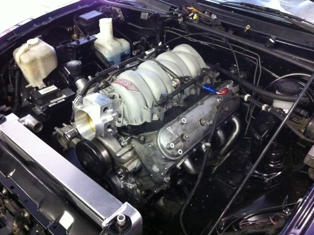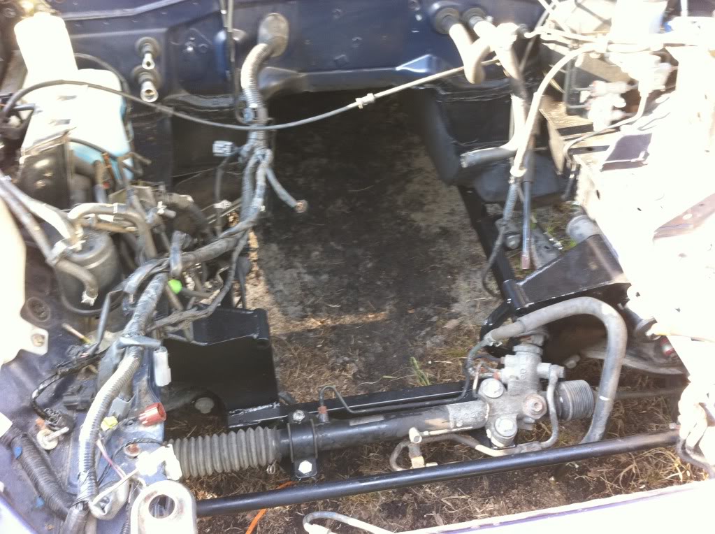 so the swap is well under way! i have ordered all the parts, only thing im waiting on is the valve covers, here are some basic shots of the k-member in place, we have cut the notches and test fitted the LS2, she will be up and running here in the next few weeks!