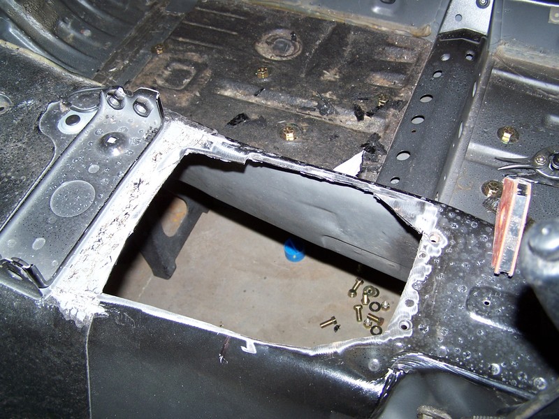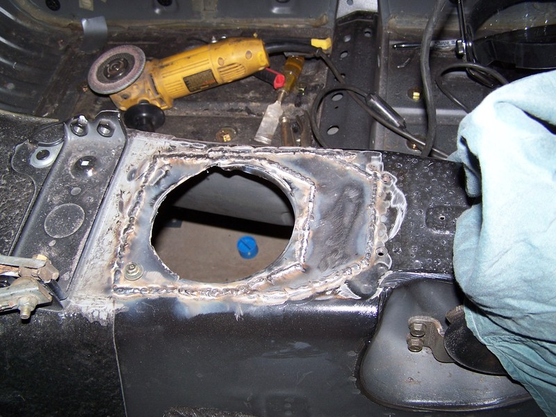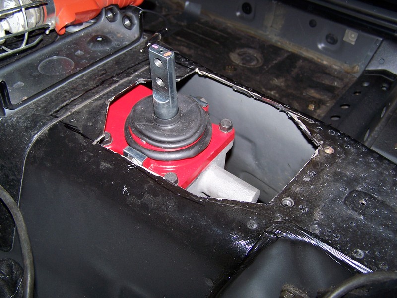 This lowered the shifter height to the 2 inches I needed. now moving on to making an offset shift leaver. I cut the trans tunnel to make room for the new shiter locations them install the trans with the shifter install to see how much i would need to shorten the shifter leaver.