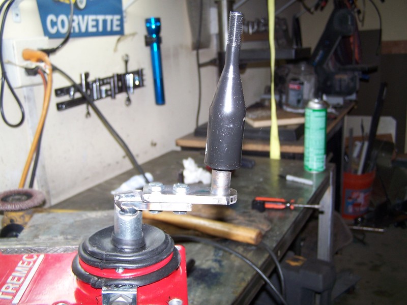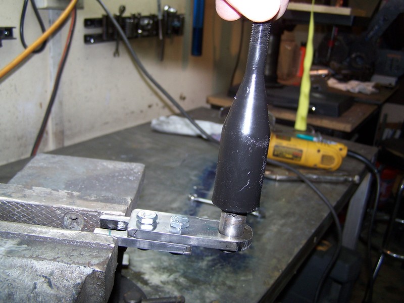 I made the offset in two peached to make it easier to instal the trans. I use the stock shift handle and just drilled a hole in the other end other flatbar for it ( I did have to change this latter)