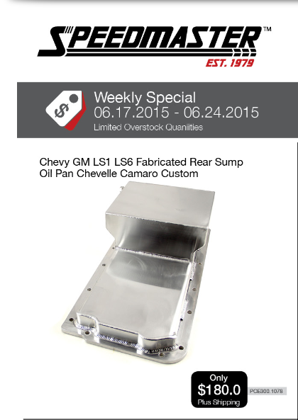 I've attached a picture of an ad I received via email from Speedmaster that shows a special on a fabricated LS oil pan for $180. It looks like it is aluminum, looks pretty shallow on the forward end, and bears quite a bit of resemblance to those fancy, high dollar specialty pans. Makes me wonder if it could be modified to create an economical alternative?