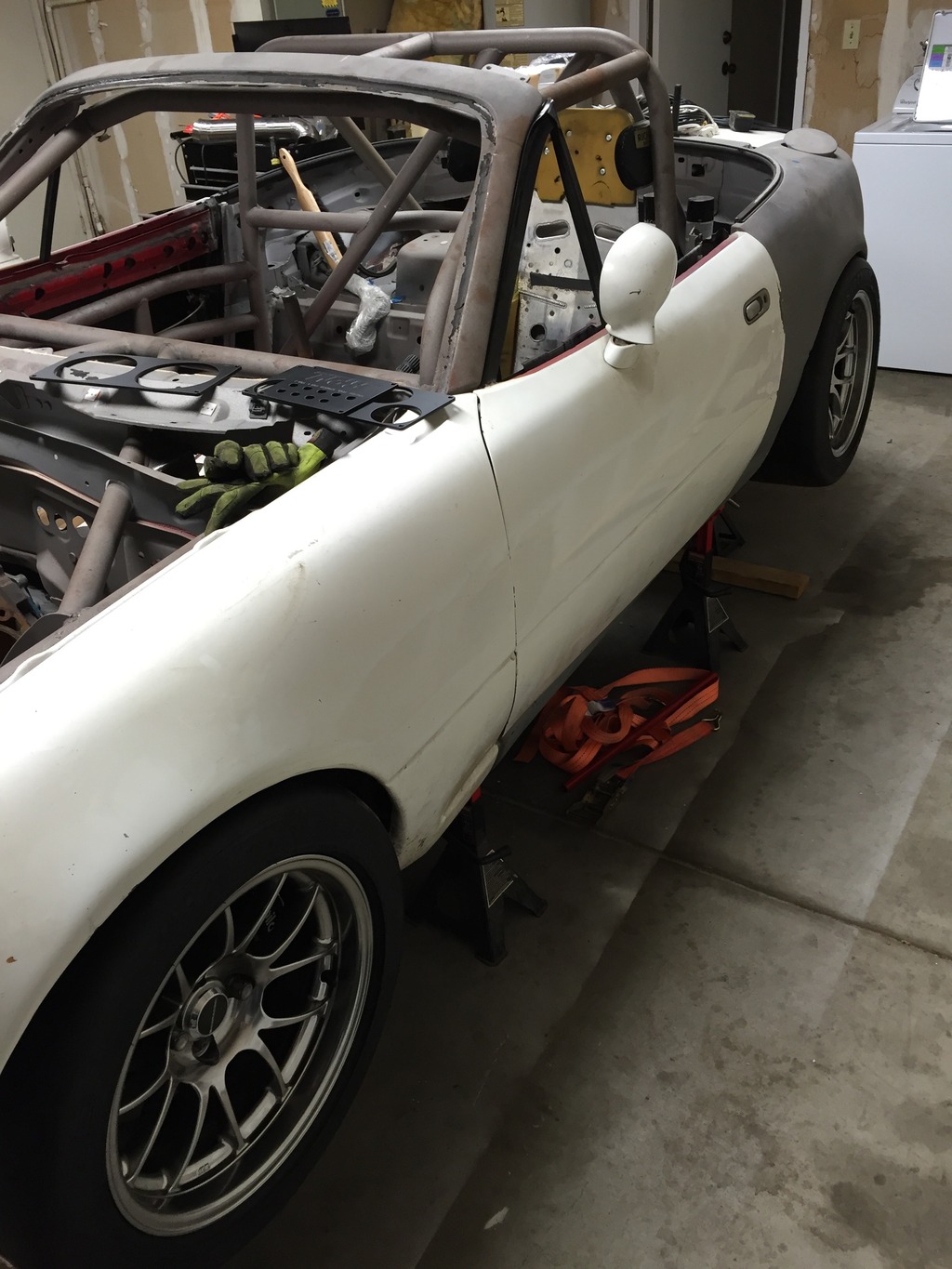 Then I got bored, took it up to Buttonwillow one hot summer day, ran the **** out of it until it blew another headgasket. I didn't really care because I was already planning on some more cylinders and more cubic inches. So I ordered some parts from Shandelle at V8Roadsters in Oct. 2014, began tearing the car down around March 2015... and it hasn't progressed much after that. With work, first house, etc... But I have started working on it again, getting ready to send it off for powder coat(striping seam sealer and undercoat is a real PITA) then paint, then I will wire and plumb the car, and figure out what to do with the engine.