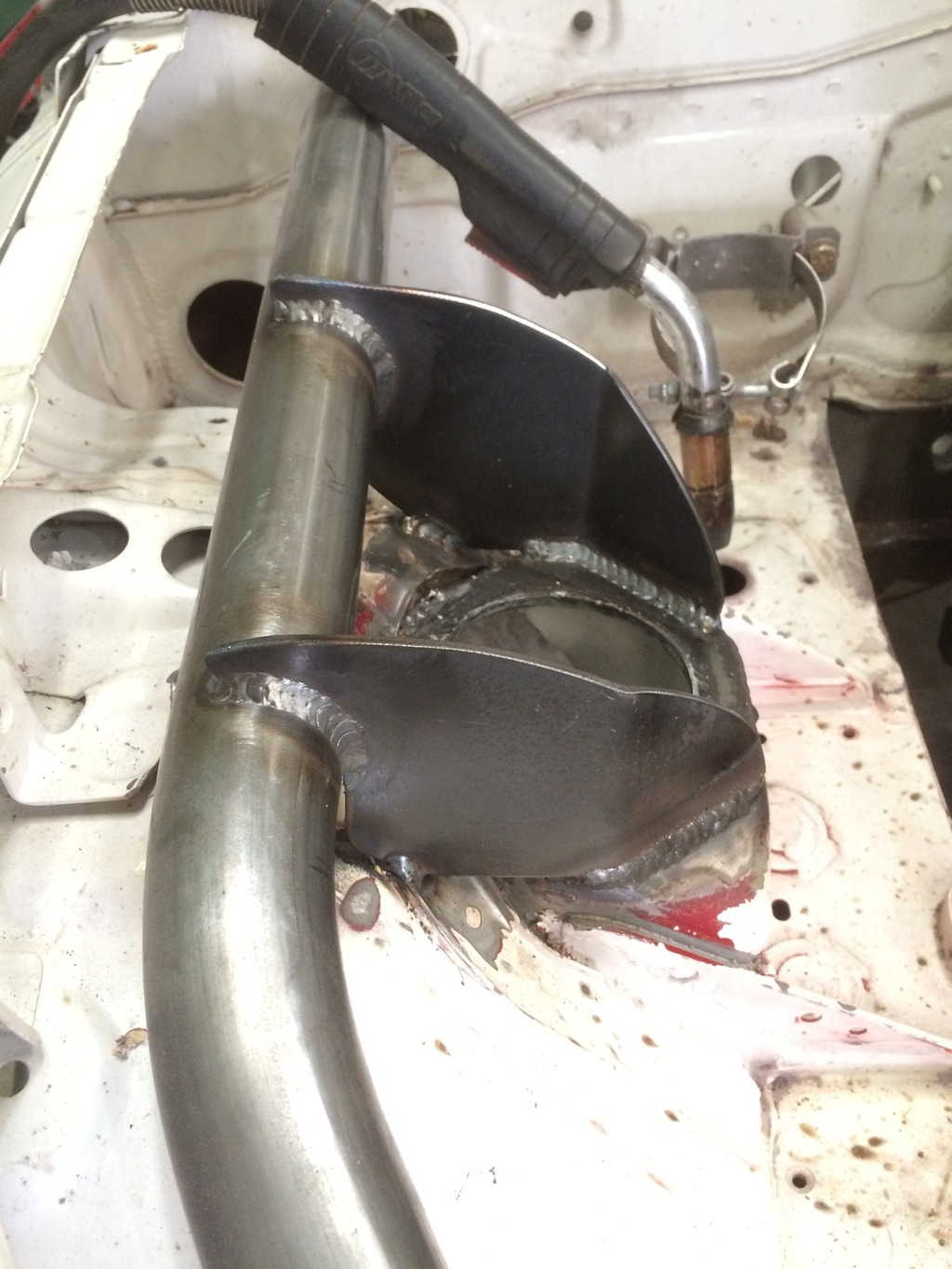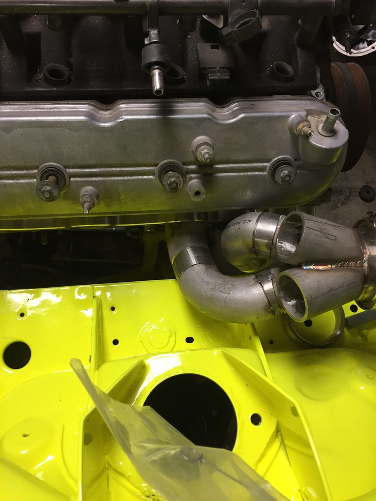 Small update, I redid the passenger side header. I tried building it when I didn't have the transmission in the car. So once I got the engine and transmission in their respective places, the header didn't fit so well. So I went ahead and started building another one last night. I moved the collector back and started on the merge pipe.*