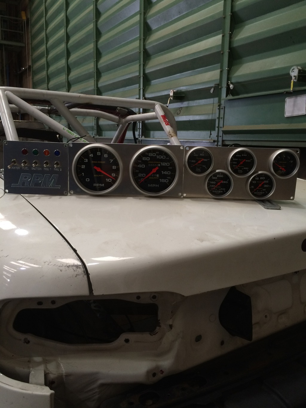I wanted to go with an old school NASCAR themed dash board, so I drew this guy up in Photoshop, sent it to my buddy and he whipped me out some panels.
