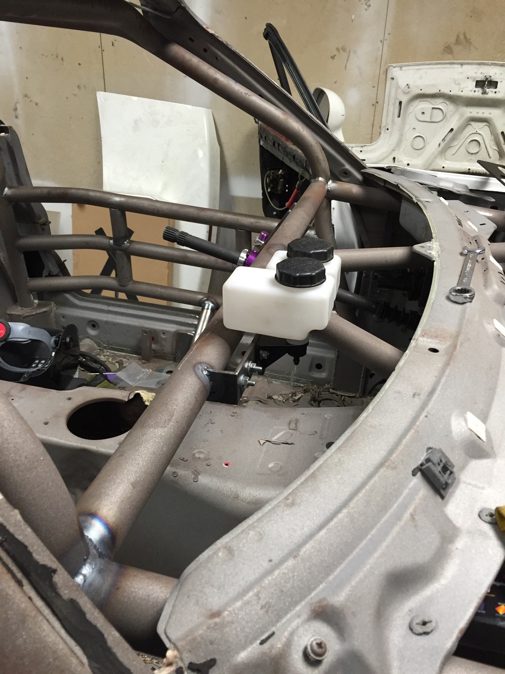 Small update, got the master cylinder reservoir mounting bracket made up and welded into place last night. Gonna get the ecu mount done tonight, there will be a 3rd reservoir for the clutch, just hadn't ordered it yet!