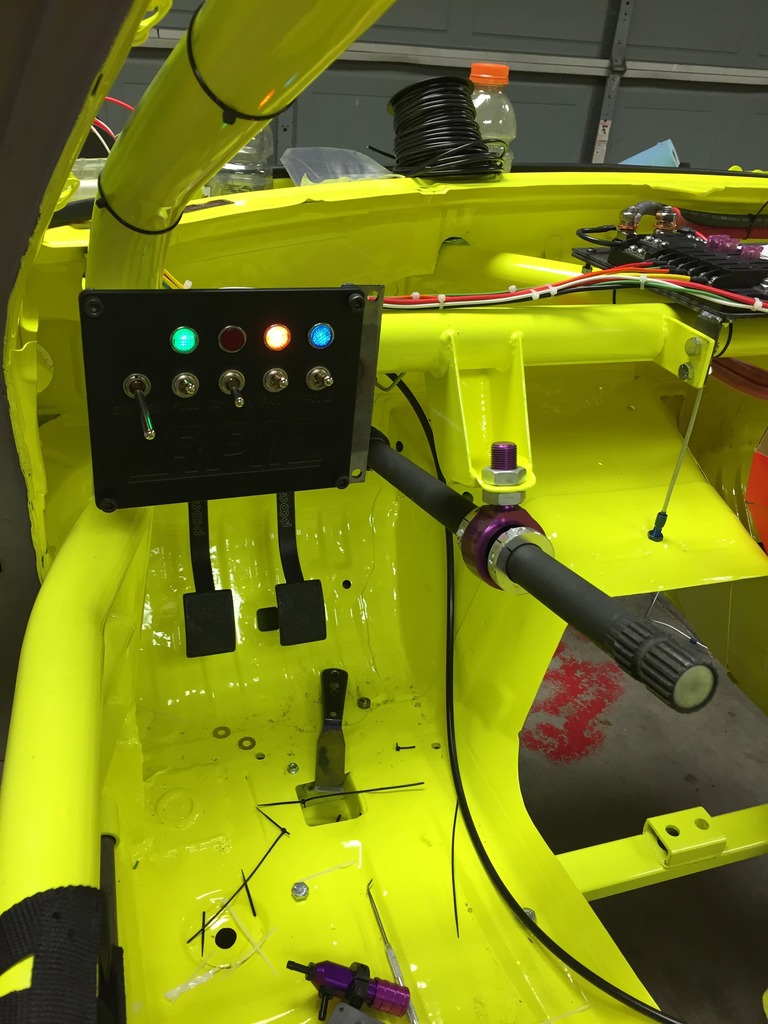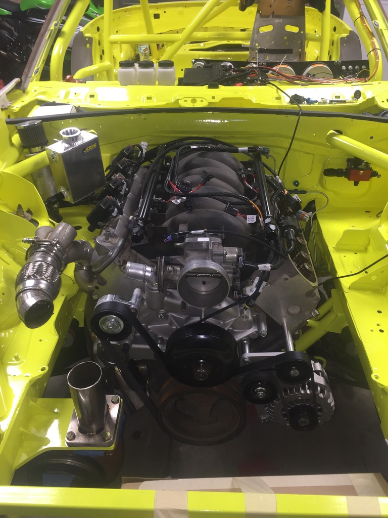 Pictures are in no particular order. I decided to ditch the idea of using a flashed ECU and modified harness. I went ahead and went with a Holley unit, with its own engine harness. The car is wired for the most part, I need to order a few more things to finish that up. Still waiting to buy the clutch, bellhousing, and hydraulic throw out bearing conversion. Things have been going somewhat well with getting the car put back together. Two of the things that still have me stumped are the downpipe construction/exhaust routing and how to duct the radiator. My original thought was from the top and out the bottom, but after talking to several people I am starting to lean more towards pulling are from the bottom of the car and ducting the hot air out from the finish panel area. That may take a couple of attempts to get the right set up as far as that is concerned. The exhaust will be tackled once I get the clutch and **** that way I won't have to take the engine and trans back out when it shows up.*