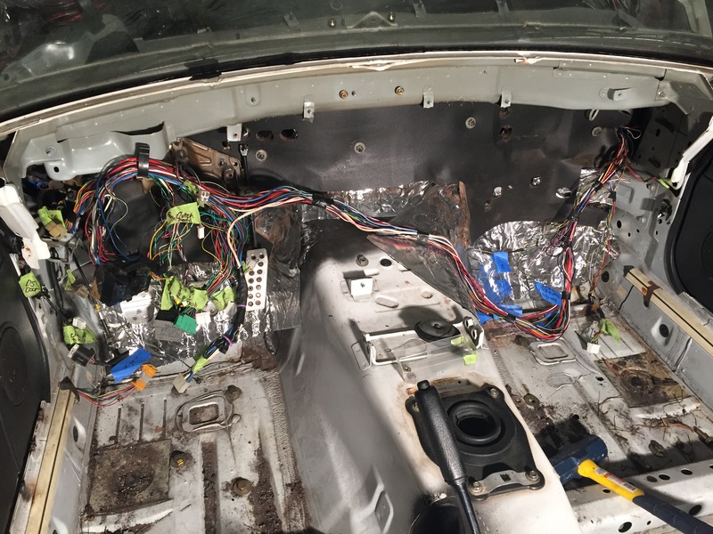 I honestly started by removing the air bag wiring, and successfully removed that. Second, I identified all of the obvious 1.6L wiring (coils, throttle body wiring, etc) and removed all of them.