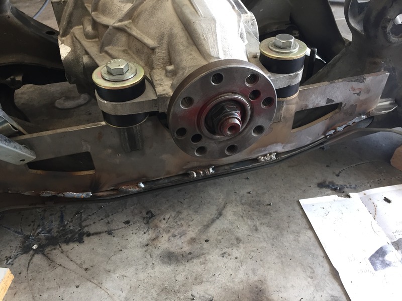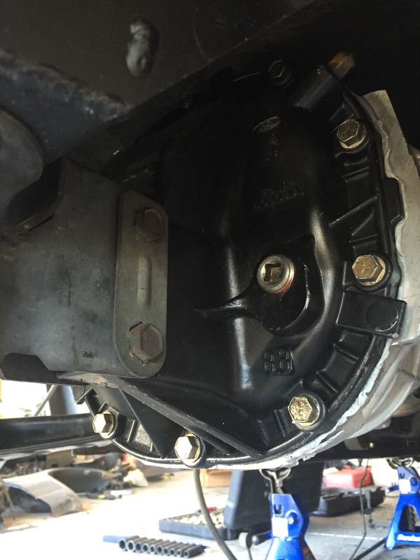 And started mounting everything to the rear end. Poly bushings, new wheel bearings, Martin's mounting kit, Super Coupe Bushings, and a Lincoln 8.8 LSD w/ 3.27's:
