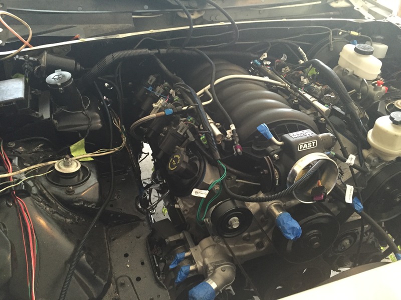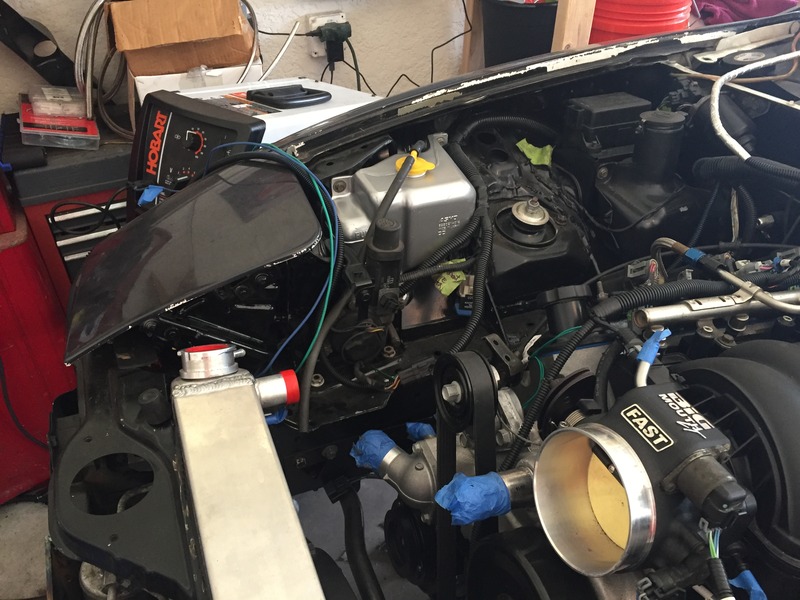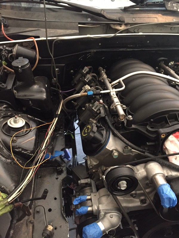 Got the BP Harness 90% wired up. Under the hood I only have a few connections still to make (AC, Fans, and some grounds that I can't reach on the rear of the motor yet.) In the car, I have the dash connections to make, but the FP wiring and 12v ignition are done.