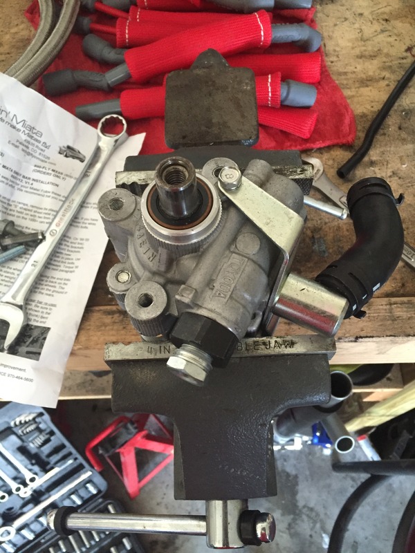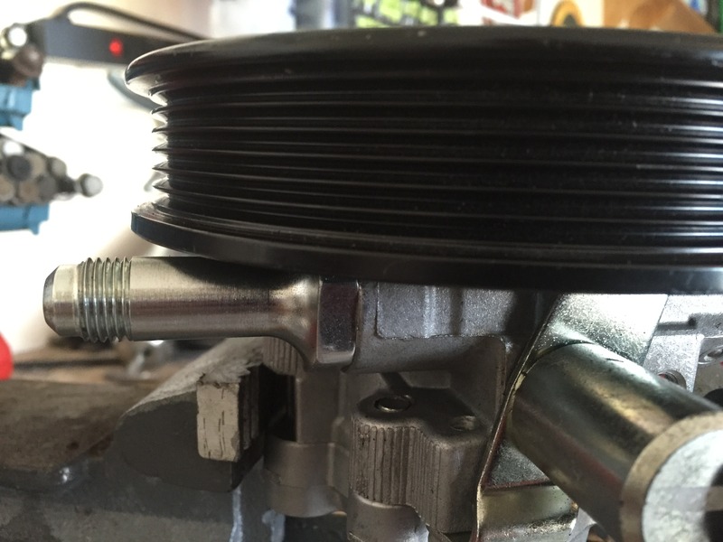 And then the first hiccup. The Flyin Miata PS kit requires removal of the PS pump pulley to thread in the fitting (I don't have a puller, so I'm going to pick one up this week). So I'm stuck on that until I can get one.