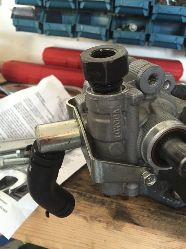 Here are some pics of the swap for anyone else that will be using power steering and the FM kit: