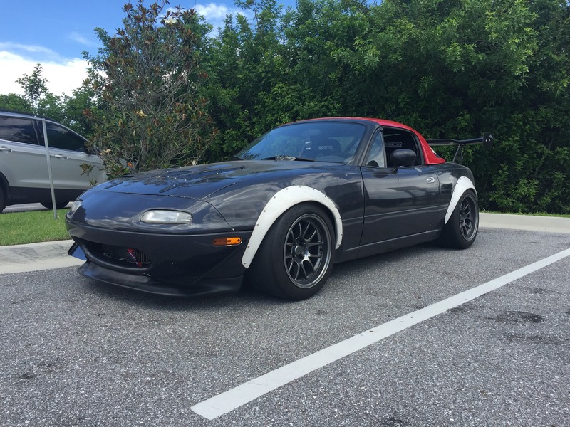 What a week. The first track event was scheduled for 9/10-9/11, so on Tuesday 9/6, I loaded the car up on the trailer and took it to my buddy’s shop, Panzer Performance (http://www.panzerperformance.com/), in Bradenton, FL to have the owner/operator Tom go through it and do a once-over of it. We had a few punch list items to take care of (ARP wheel studs, wing install, alignment, and tune). Luckily for me Florida Speed and Power is located in the building directly behind Panzer Performance, so they can do the tuning on their dyno. Here she is all loaded up and getting on the road: https://www.v8miata.net/attachment.p...ine=1473693040 On Tuesday we got the wheel studs replaced, went over the suspension, and tackled a transmission leak I had been chasing. So Wednesday, we took it for a test drive around the block and…. Dropped a lifter. The ticking was very prevalent on cylinder 7, so we assumed it was a broken/loose rocker arm, or valve spring. Unfortunately after narrowing it down, we pulled the head and found one dead lifter and a cam lobe that was scored a bit more than the others. https://www.v8miata.net/attachment.p...ine=1473693040 https://www.v8miata.net/attachment.p...ine=1473693040 By a stroke of luck, the local GM dealership had a set of LS7 lifters in-stock, so I picked them up and replaced the head gasket on the drivers side of the motor. By Thursday at 10pm, the car was back in action with no noise and good power. Friday morning, we sent it off for an alignment and a dyno tune at Florida Speed and Power. I got the car back around 3pm Friday and installed the wing and finished up the interior. https://www.v8miata.net/attachment.p...ine=1473693040 https://www.v8miata.net/attachment.p...ine=1473693040 https://www.v8miata.net/attachment.p...ine=1473693040 Then we loaded her up and headed to the racetrack… |