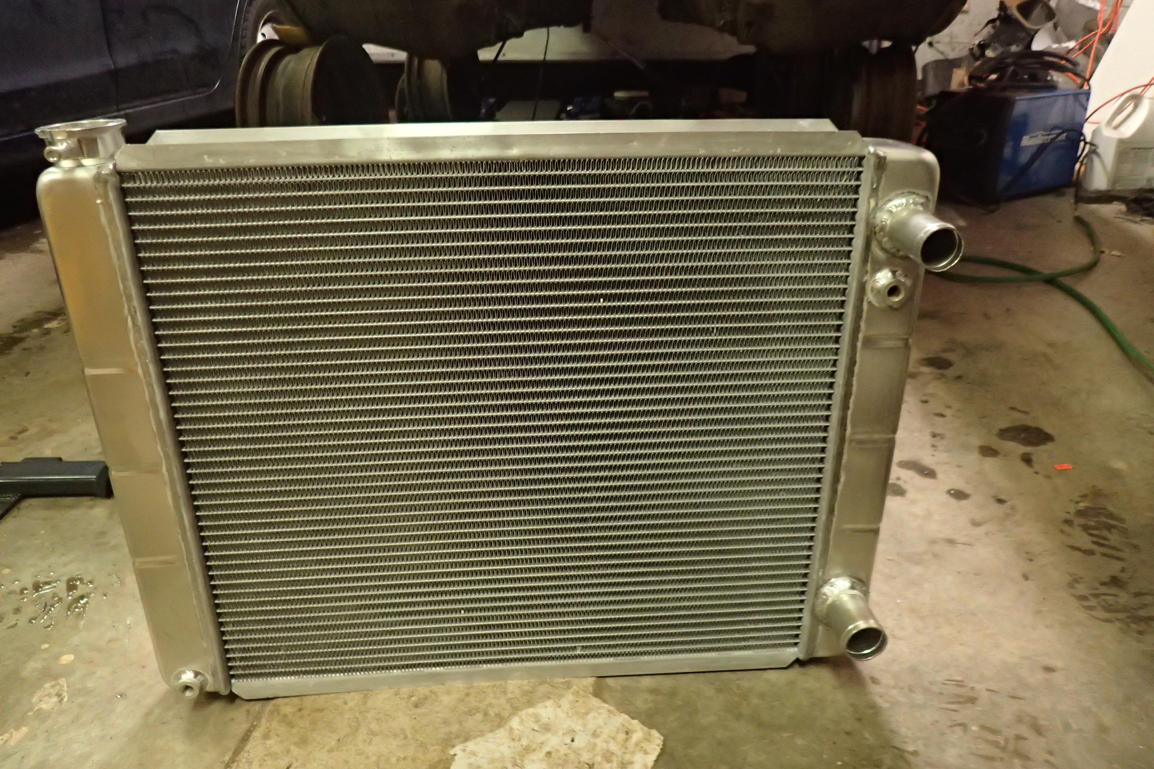 Picked up my radiator, a customized Northern Radiator. Got my transmission reassembled today. Clutch installed on the engine. And welded the interior transmission tunnel braces in. Once i finished i realized i had put the braces on the wrong sides. No wonder they took so much adjusting. Now i have to figure out the clutch lines so i can put the transmission on the engine.