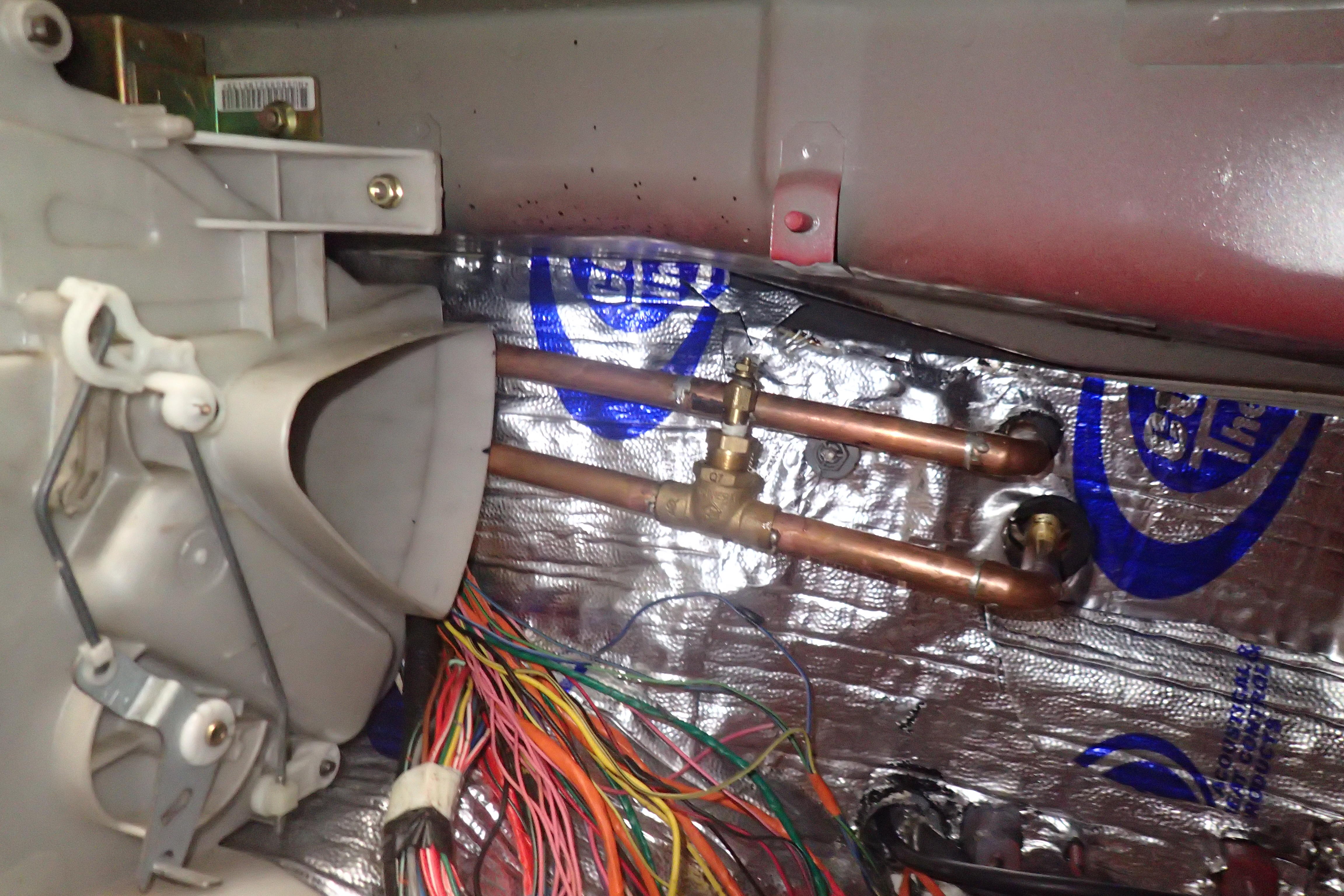 except i dont have ac so i used the ac holes. i need a port for my water temp sensor and inserted it into the heater inlet.