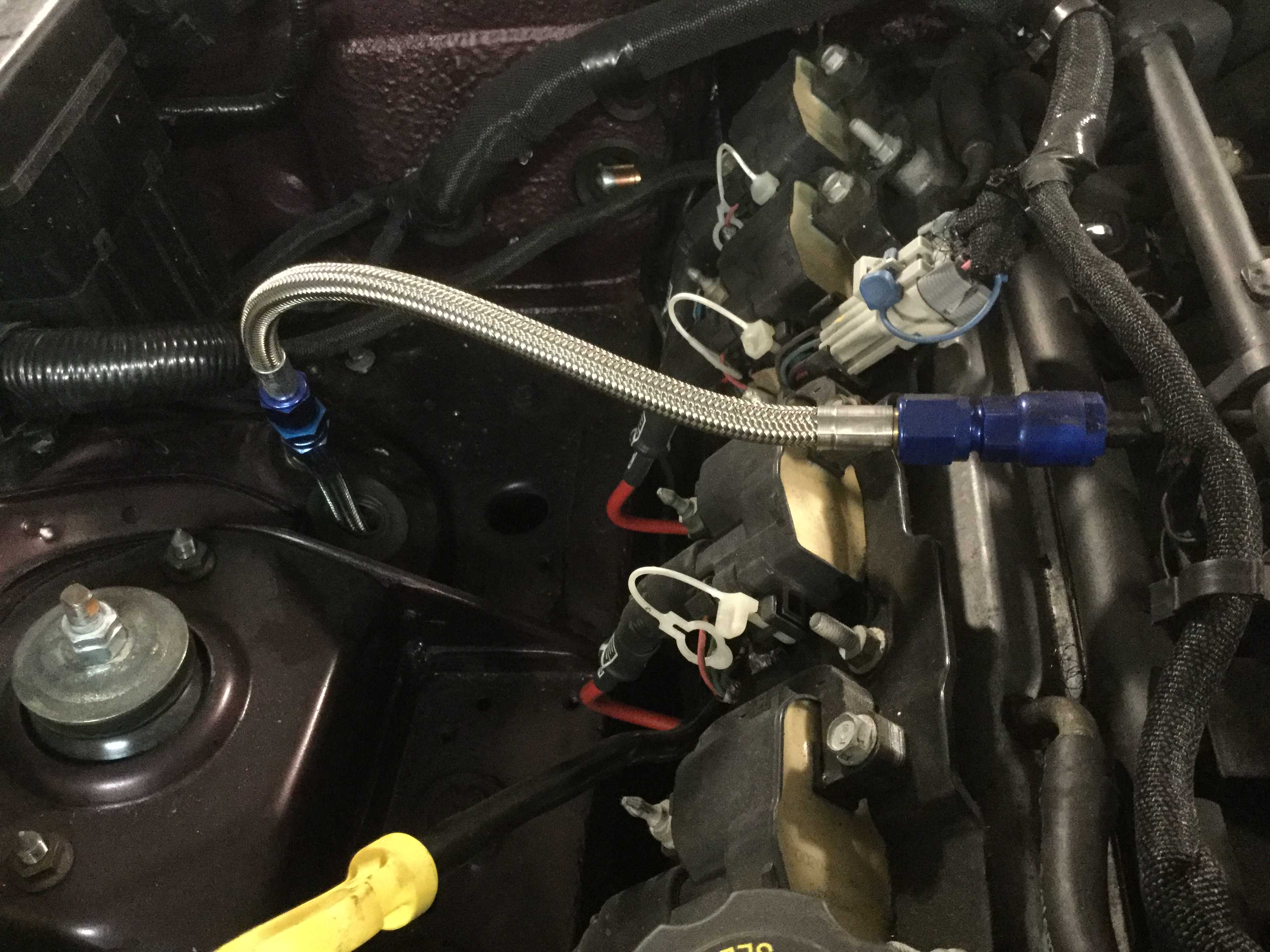 I did not take a picture of the brake lines before bending but they were definitely not going to work. When you get to that point, install them and then scratch your head for a minute. There might be other ways to get the job done but I found that simply using my hands to carefully re-bend the tubes to go towards the passenger side frame rail worked out pretty well. Once they were roughly in the location I felt would be usable, I did a trial fit of the engine and found out I had to move them some more. If you look hard at my picture, hopefully you can get it bent correctly the first time. Once I was happy with the location I put a couple of clamps to keep them close to the firewall and away from the headers. At the same time I clamped the fuel line to the frame rail to keep it as far away from the header heat as possible. I also wrapped the braided line in some reflective aluminum wrap (not shown in the picture) to hopefully reflect the heat away from the fuel line. It doesn't really look like it in the picture but everything is tight against the frame rail. Edit; After doing a test fit I do not like how close to the headers the fuel line is running so I re-routed the line as detailed in one of the later posts. Doing so required purchasing a short piece of prefabricated braided fuel line and an adaptor. Attachment 8528 |