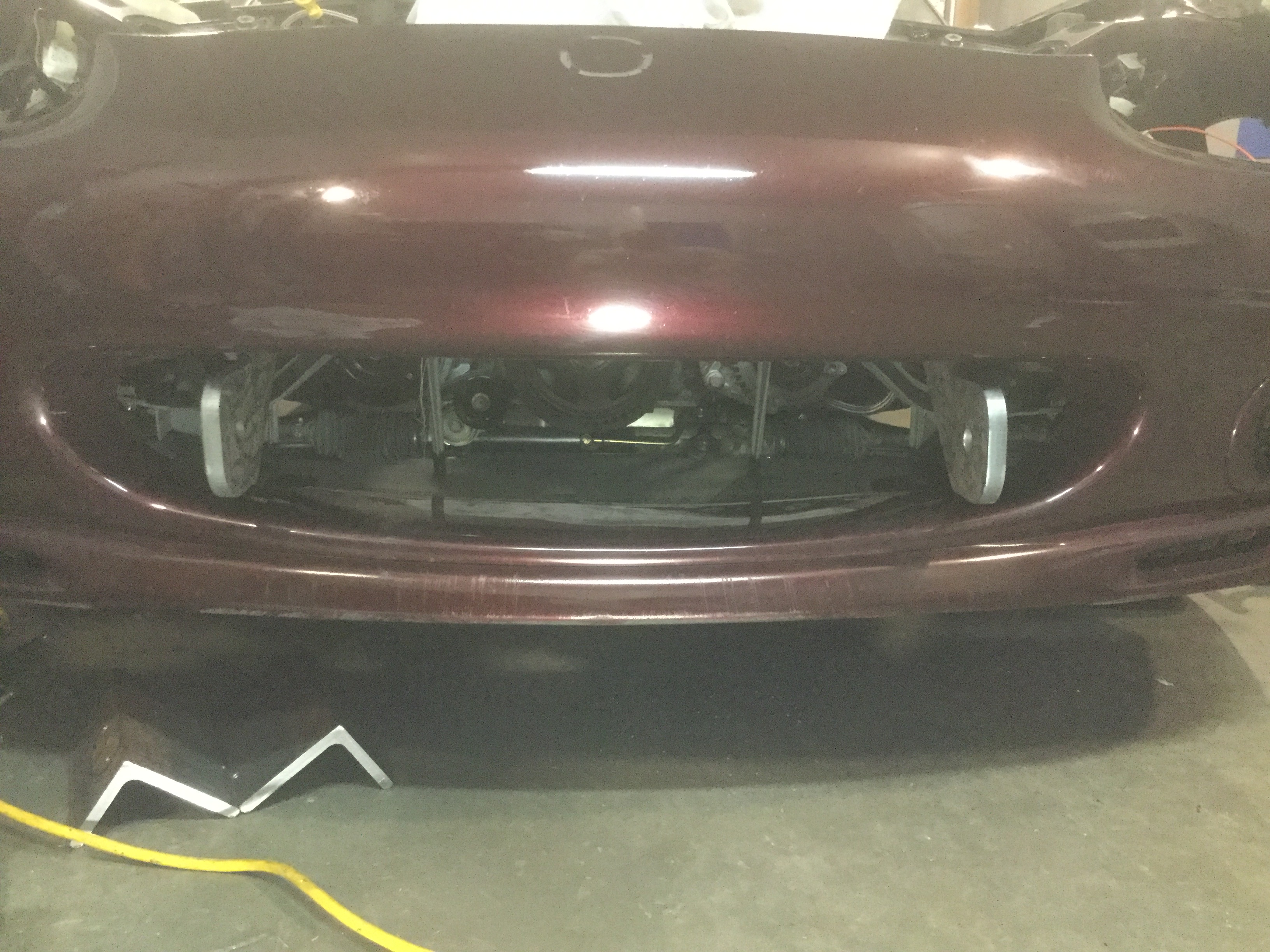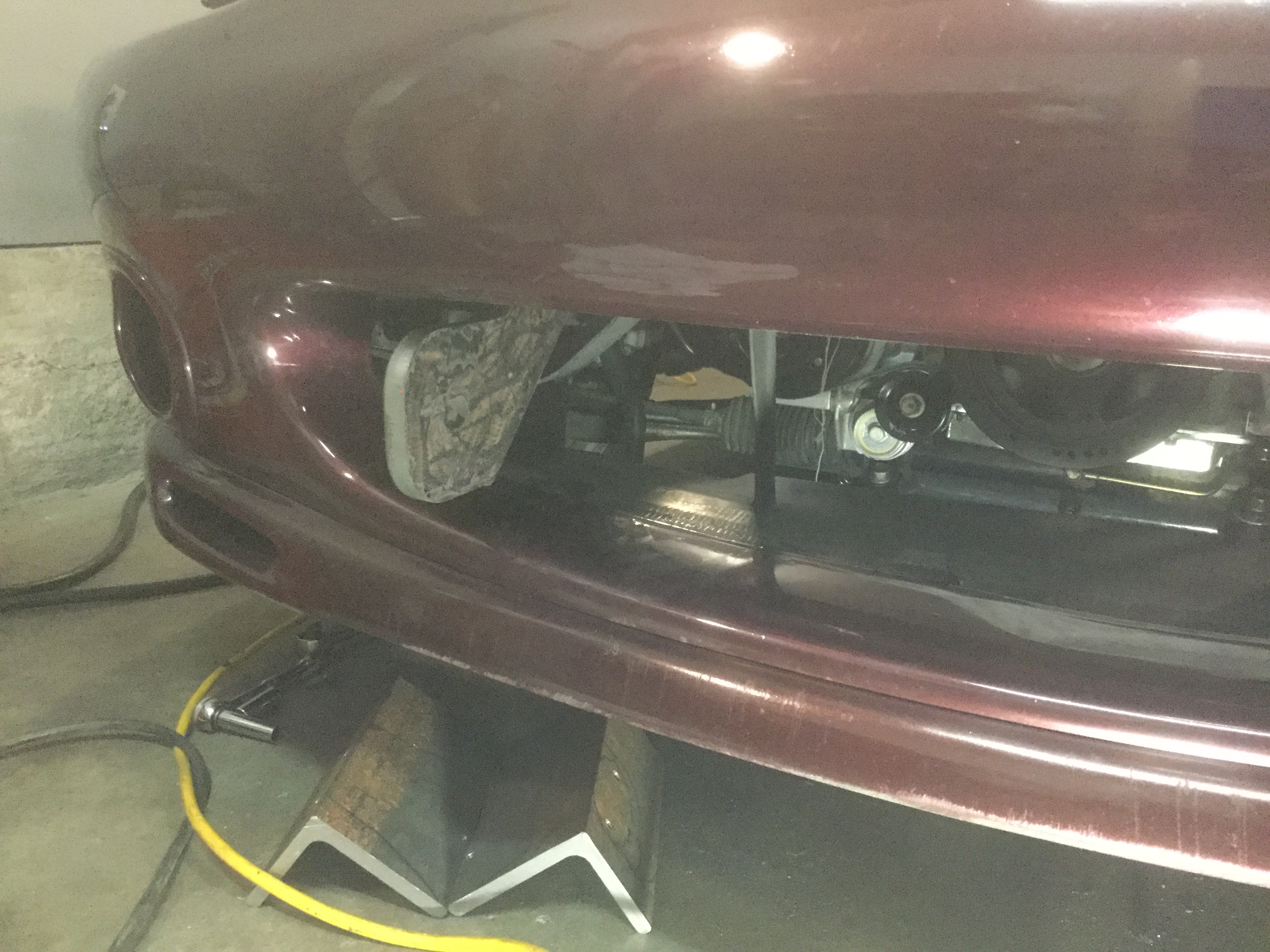 To that end I have fabricated two brackets that weld to the front cross member of the car. Since I work at a steel fabrication shop and we have a plasma burning table I got the operator to cut me a couple of brackets while he was cutting some other stuff. They ended up being 1/2" thk., which is thicker and heavier than necessary but will get the job done really well. Edit; Each of the brackets should have gotten a second hole installed towards the bottom to facilitate the installation of a safety chain mounting point. Attachment 8505 Because I am already trimming the cross member to gain clearance for the Corvette cold air intake, the bracket welds in place fairly easy. In hind sight I could have made the contact surface a bit larger and welded them directly to the car but my original plan was to weld them to the replacement support angle that re-connects the two sides of the framework. After mocking up the cross support it became clear that the brackets need to be as far away from each other as possible to get good triangulation for the actual tow bar to attach. Attachment 8506 My next worry was how well the front bumper cover installs with the additional brackets in place so I did a test fit while the brackets were just tacked in place. It works out very well because the location allows the cover to slide in place real easy without any contact at all. Attachment 8507 Attachment 8508 It all seems to fit up properly but I need to remove the cover and install the cross angle and weld everything together. Since I am waiting on the cold air kit from Flyin Miata, it seems best to not actually weld everything until test fitting the intake. The other thing I did to be able to tow the car is to add a little black box with to wire connection that lets the car tail lights mimic trailer lights but not back feed the electrical system. Checked on the internet and bought a kit for about $40. Did not take any pictures but it installed real easily by tying in to the wiring harness that sits right behind the driver's seat. Spliced in the box connections per the instructions and everything works out really nice and clean. Run the 4 wire bundle up to the front of the car and make sure to have enough length to hook to the tow vehicle connection. Did not take any pictures but the electrical stuff installed nice and easy. The box location ended up being right next to the relay and breaker that were previously added for the upgraded fuel pump. |