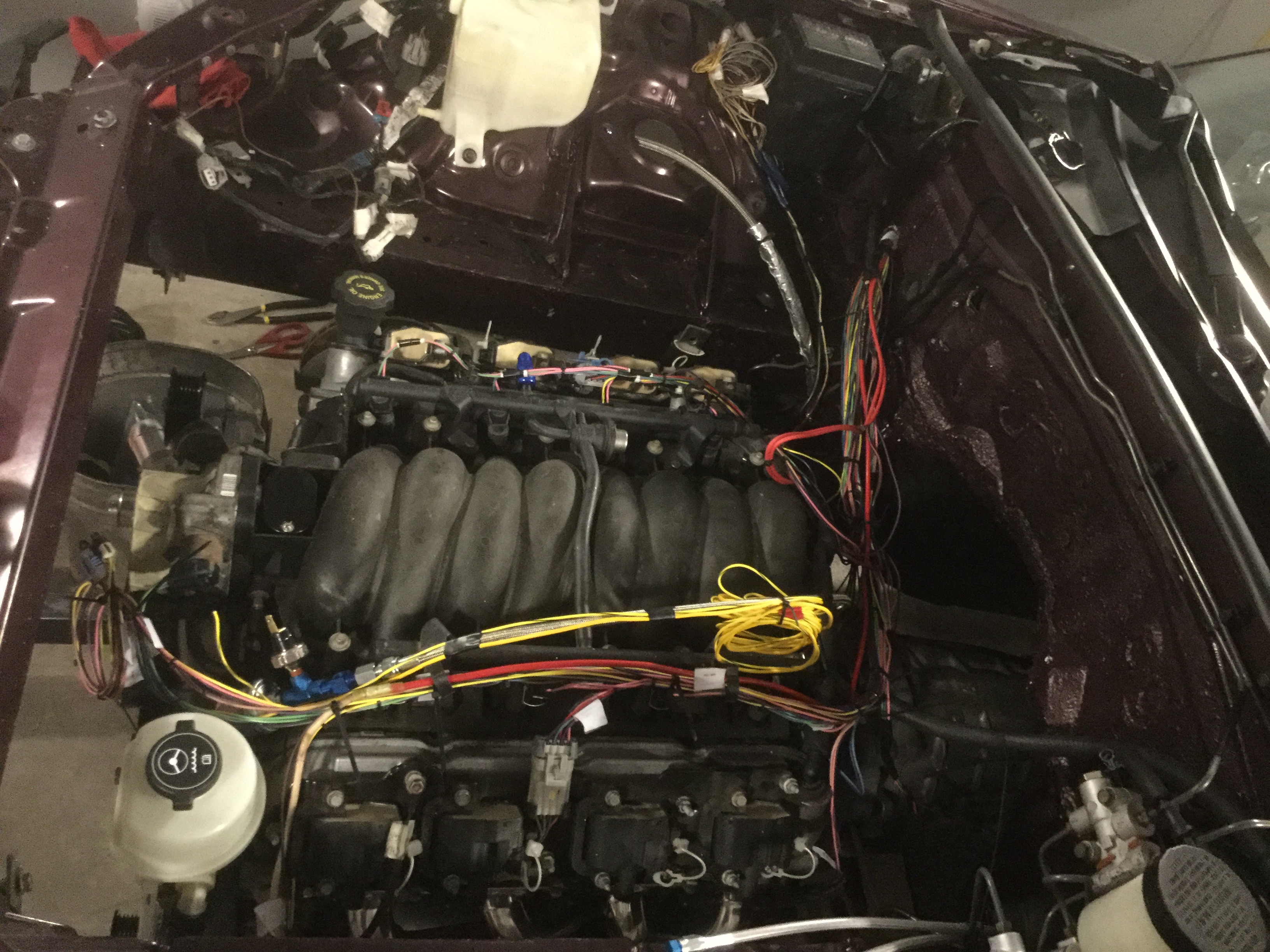 Edit: After the initial month of driving the car got the engine and transmission removed to fix several issues (transmission upgrade and rear main seal replacement). As part of putting the car back together I removed the cover sleeves and taping from the wiring harness and reworked it to raise the main section of the wiring away from the engine heat and mounted it higher on the firewall. There is plenty of wire length available so there is no reason to make the drops as short as I did the first time. The second time I zip tied the main harness up near the brake lines and routed the drops with the engine sitting about 6" lower than it's final resting place to give a reasonable amount of slack to each of the drops. Live and learn. You can see the difference between the next two pictures. The first picture is the final engine bay. https://cimg7.ibsrv.net/gimg/www.v8m...1fb484de3d.png This picture is the initial engine bay as the wiring harness was originally done. Attachment 8499 |