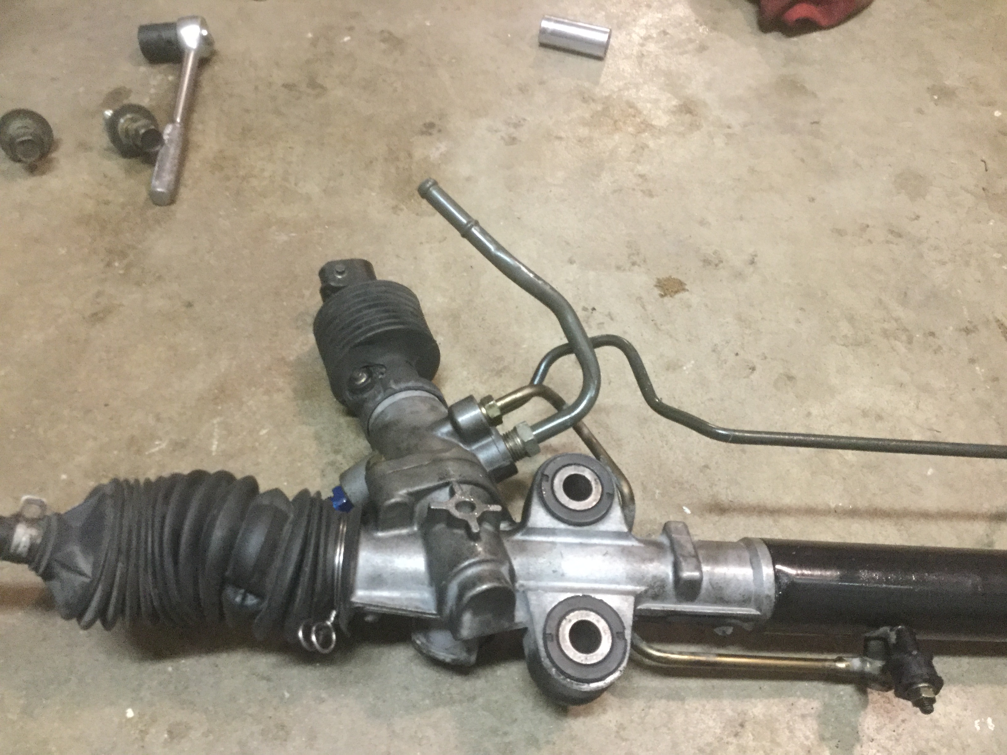 The low pressure return tube was a bit more hassle. The original bend made the tube try to go right where the new subframe sits so it took a bit more bending to get it into a reasonable location. I just straightened it out a bit until it would go on and off at the same time as the rack assembly. The Flyin Miata kit has some high pressure rubber tubing and some clamps to allow it to be routed to the return connection on the CTS-V power steering pump. I will probably do a clamp on the side frame rail to keep the tubing from getting too close to the header pipe. The picture shows the final shape of the return hard tubing. Attachment 8529 |