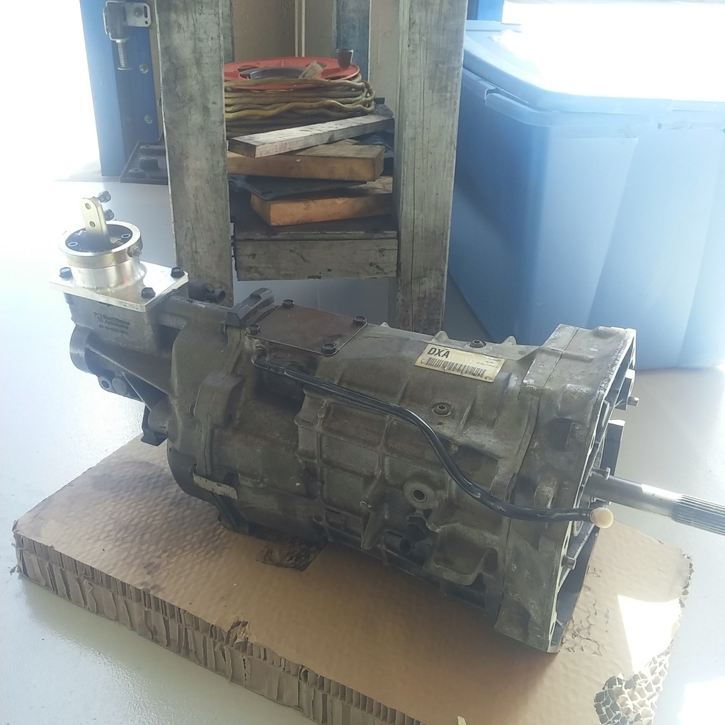 Looks like a Pro 5.0 from here... Curious if he got the tranny with shifter already installed or if it was added the moment he got this thing out of his mailbox?