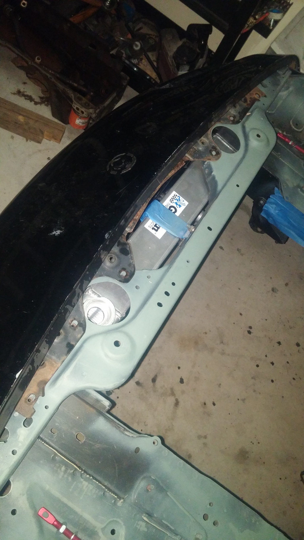 while the car is at paint I decided to swap over the dash stuff. Since I already modded the harness in my 1.8 dash to work with the NB cluster and the harness is pretty tricky to remove from the bar without breaking all the clips I decided to swap the bar and harness. well it fits just fine and such but the bar is slightly in the way of the 1.6 glove box. I'll have to modify it some to get it to fit, but no big deal. I'll also swap over the vin plate. The rivets aren't anything special, just black so I'll just use normal rivets and use something to color them black.