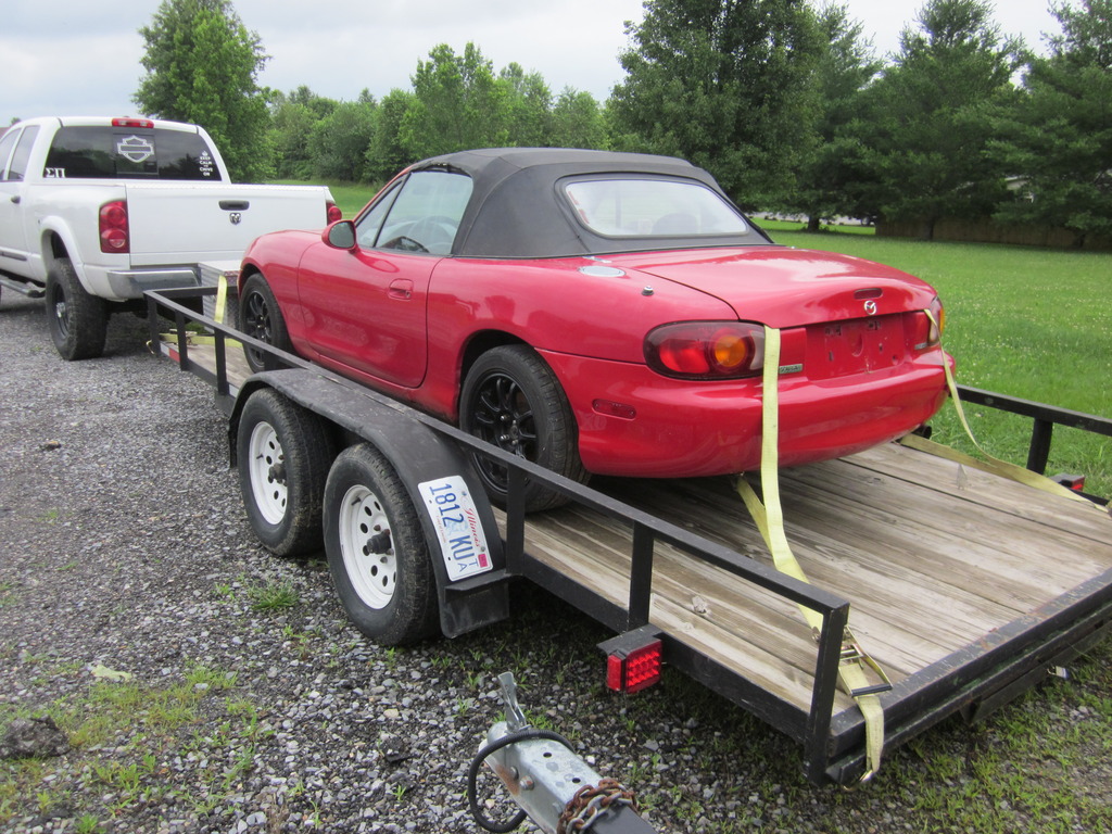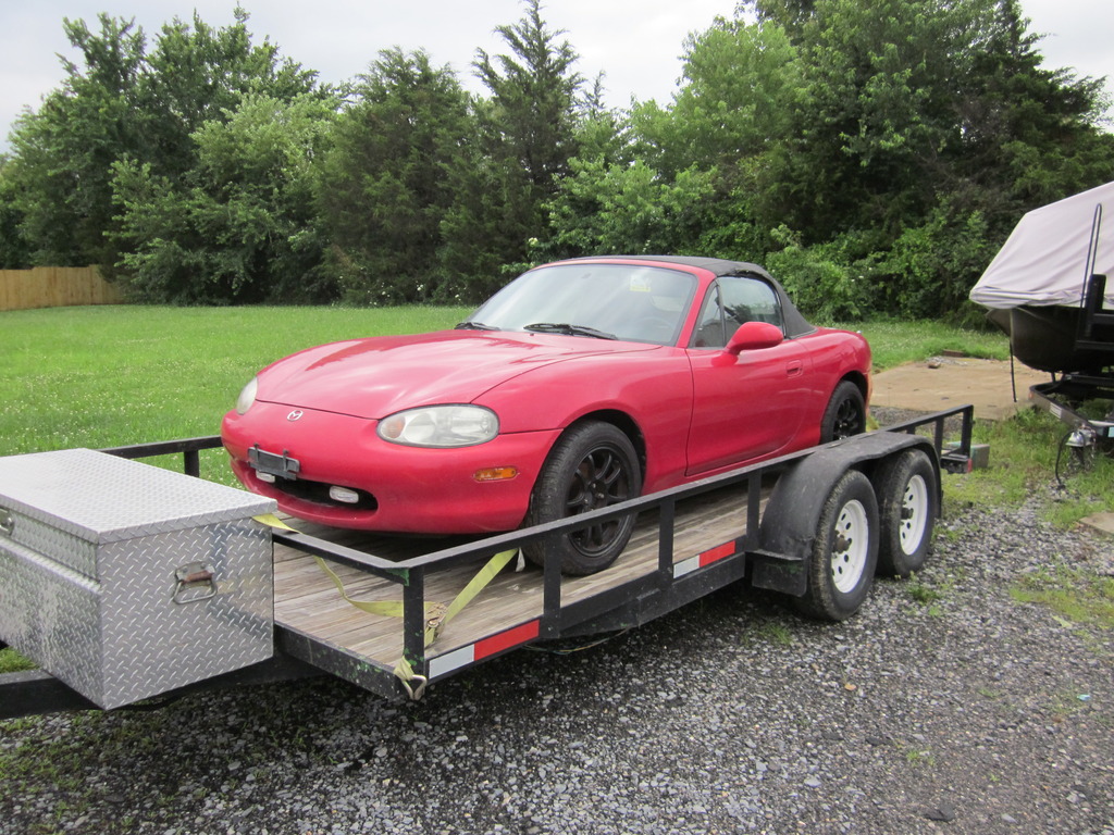 Well now here we are a year later, and I have been looking for a good clean chassis to complete my build on. I had two requirements only that could not be negotiated. Clean title, and rust free. I actually bought a nice 96 m-edition at first to complete my swap, but then changed my mind as I had wanted another NB. As luck turns out, I found this 10AE that a gentleman from nashville had used as a donor for his catfish, so it was perfect for me since I didn't need most of the stuff he had taken. Here she is...in all her glory.