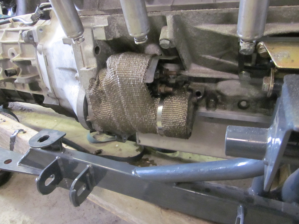 Another learning experience for me here.....When I test fitted the engine/trans, I just used my floor jack to hold the trans up about where I thought it should have been....boy did I make things hard on myself there. When It came down to it, The trans was about 4-5 inches lower when I test fitted it than when I actually mounted it. This may not seem like a big deal, but it was HUGE when It came down to the amount of room I had between the firewall and the back of then engine....Lets just say I did some firewall massaging for no reason......oh well.