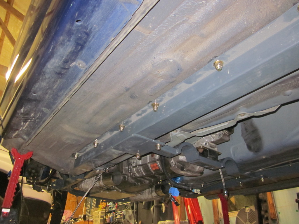 Next, now that I had the whole assembly in place I located the sub frame connectors with the trans mount, and put them in place. Not much exciting here, but I had forgotten to locate them when I test fitted the engine so I had to wait.