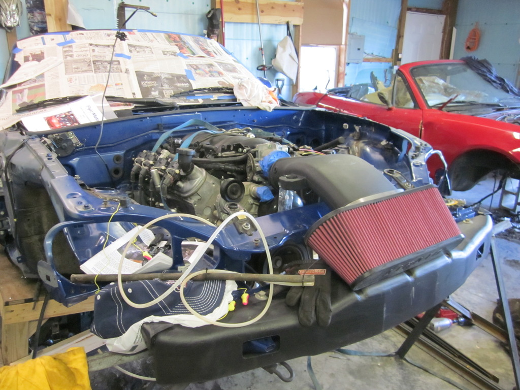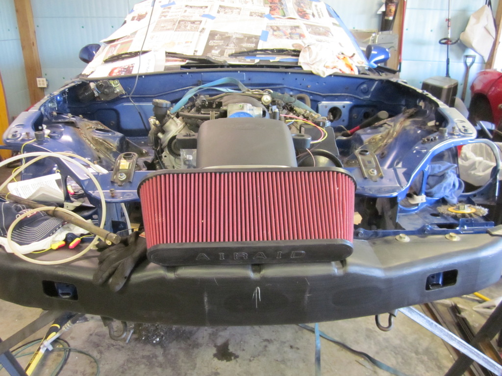 Now it's time to get busy on that big intake....I was scared that the big filter wasn't going to fit under the bumper cover.....it does but by a very small margin.