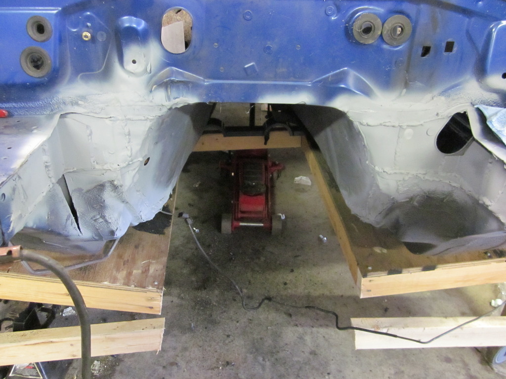 After that I obviously pulled her back out and began the welding process on everything that was left. All the seams that had been exposed or cut were addressed, as well as the tunnel and the support gussets inside.