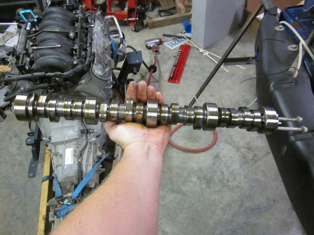 First and foremost I got the new cam/springs/pushrods into the motor. This was my first cam swap on a OHV engine, but I thought it went about as smooth as one can hope for. As I have said before, my engine only has 17k miles on it, and it shows when you pull off the timing cover and valve covers....boy is she clean. I decided to go with a Texas Speed 228r cam, .588 lift, 228 dur, 112 LSA. Obviously I had an advantage since I had nothing in front of the engine to give me trouble, but I honestly think I did the whole swap in just under 3 hours total.