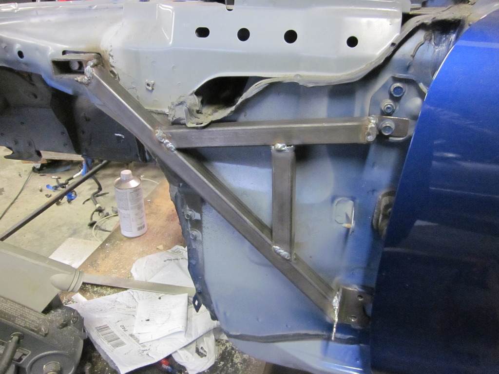 Last real bit of progress to mention on this car is the welding under the kick plates as seen in these pictures. In my opinion, this is one of the key areas to stiffen up for launching the car.