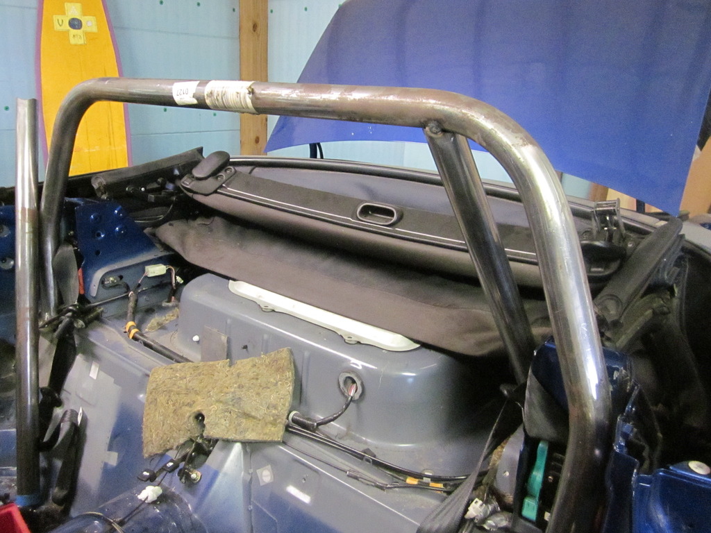 To start off, last weekend i began fitting the roll cage into the car, haven't got it complete yet but it is coming along nicely. I ended up putting it together with the main hoop in the exact same spot that HD puts their Hardcore M2 Hardtop bars. It looks low to me, but unless I have forgotten how to read a tape measure, its correct. Please not it is not complete here, and the door bars are just laying in place.