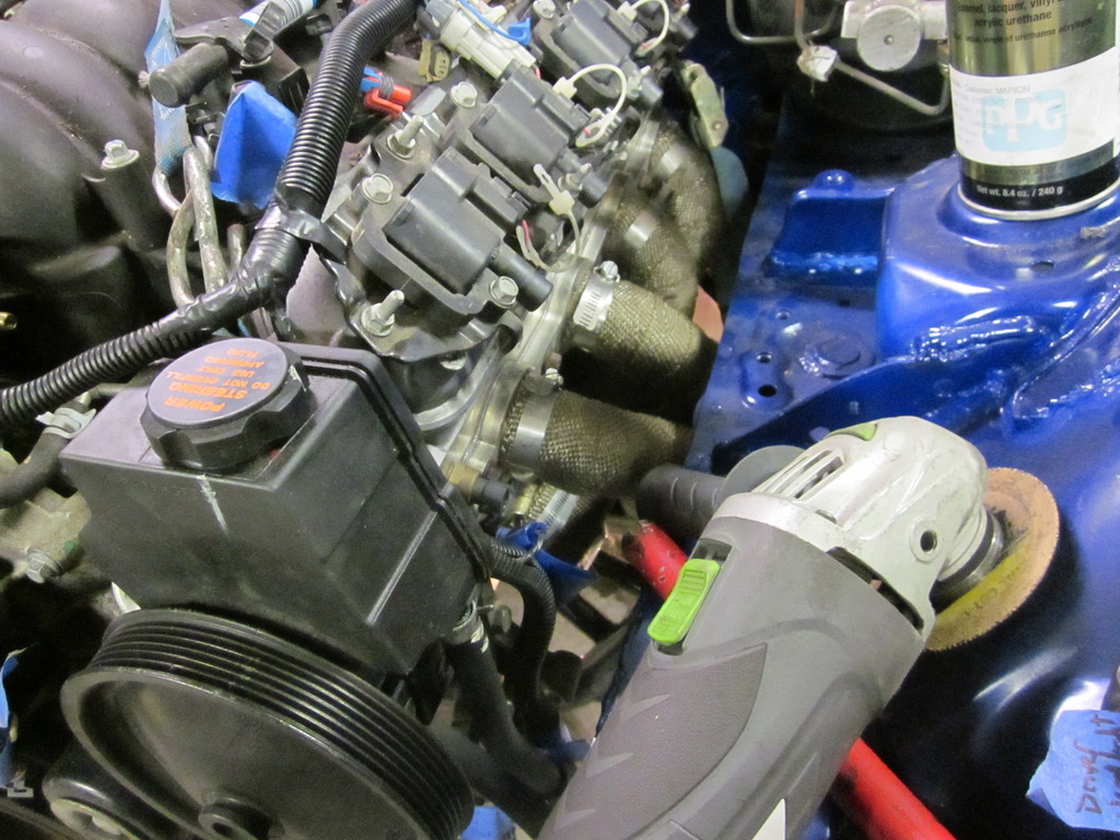 Something to note that I guess I had either not read or not remembered from anyone else. The V8R longtubes will NOT go in on either side with the engine in the car. They look like they might, but they don't....trust me. Oh well, out came the heart one last time and with the LT's loosely in place, back home she went.