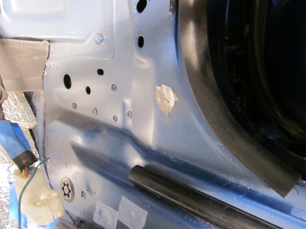 That was the end for that night, and I'll chalk that one up to temporary insanity because it would be foolish to not put the door bars in. So the next day I regrouped and went to work. I'm not sure how the fabworx bars mount, but I had always though that location is best for mounting, so I went to work with my own style mounts. There is a little bit of a tack weld at this location I had to smooth off, but other then that they were good to go.