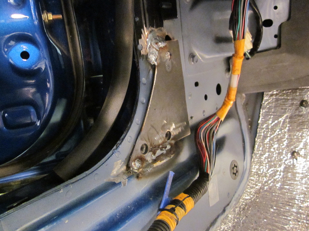 Now the plate can be welded on and you have mounting locations for the door bar itself. I swear the welds here are not as bad as the picture makes them look.