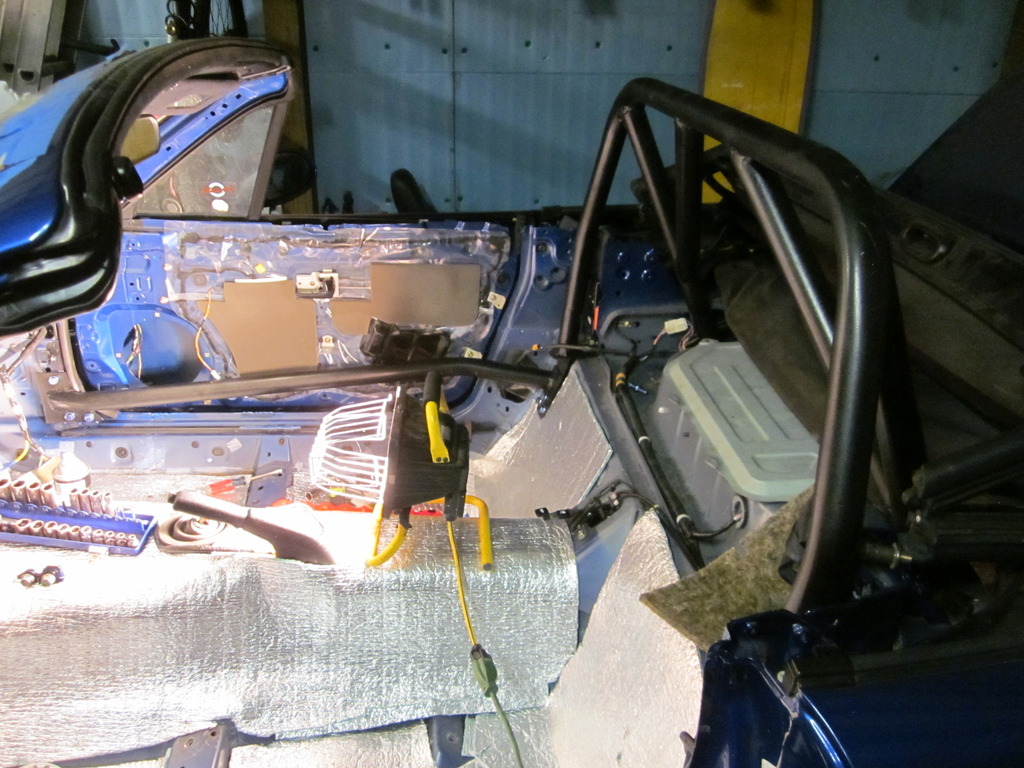From there it was another time where I set with a beer in hand scratching my head and test fitting for a while, mostly over the door bars. I had my buddy that has a nice tube bender put a couple 15 degree bends in the end of my bars, but was still fighting them. Once my cup ran dry I decided that I did not want to mess with door bars getting in my door panels way, and possibly limiting leg room so I tossed those them out and put in the insulation throughout the floor and rear bulkhead.