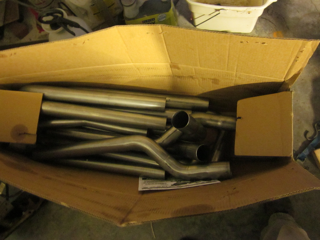 Didn't actually do any work with this, but I got some other parts for the car. I had been planning on using one of the stainless u-fit kits, and while I was keeping an eye peeled I got one of the Flowmaster kits for 300 to my door, so it showed up a couple weeks ago. Very nice stuff, looking forward to working with it.