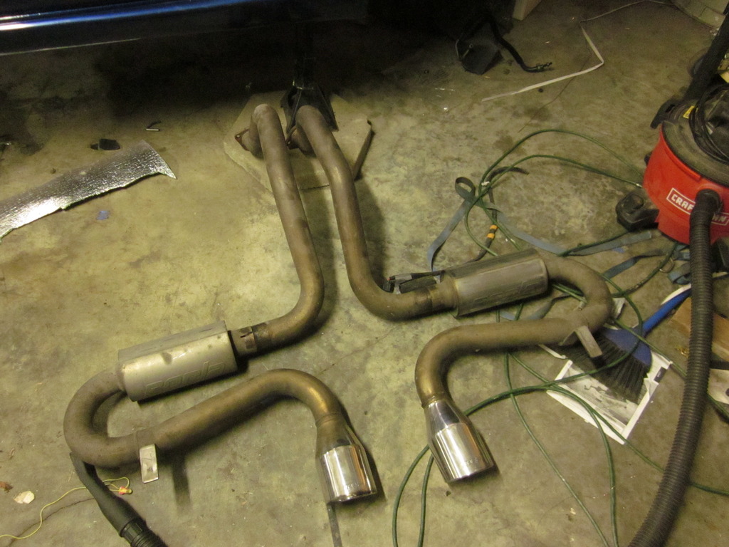 Only thing that could have changed my decision was this....about two days after the kit showed up, someone local to me listed a partout of a C5 vette. I called them up and sure enough, it had a Borla catback on it, and given the layout of vette exhaust, I am sure I can make this work nicely. It's a little dirty in the pic, but its all SS, and if nothing else the mufflers are pretty pricey new. I gave just under 300 for it, I figure worst case I can resell.