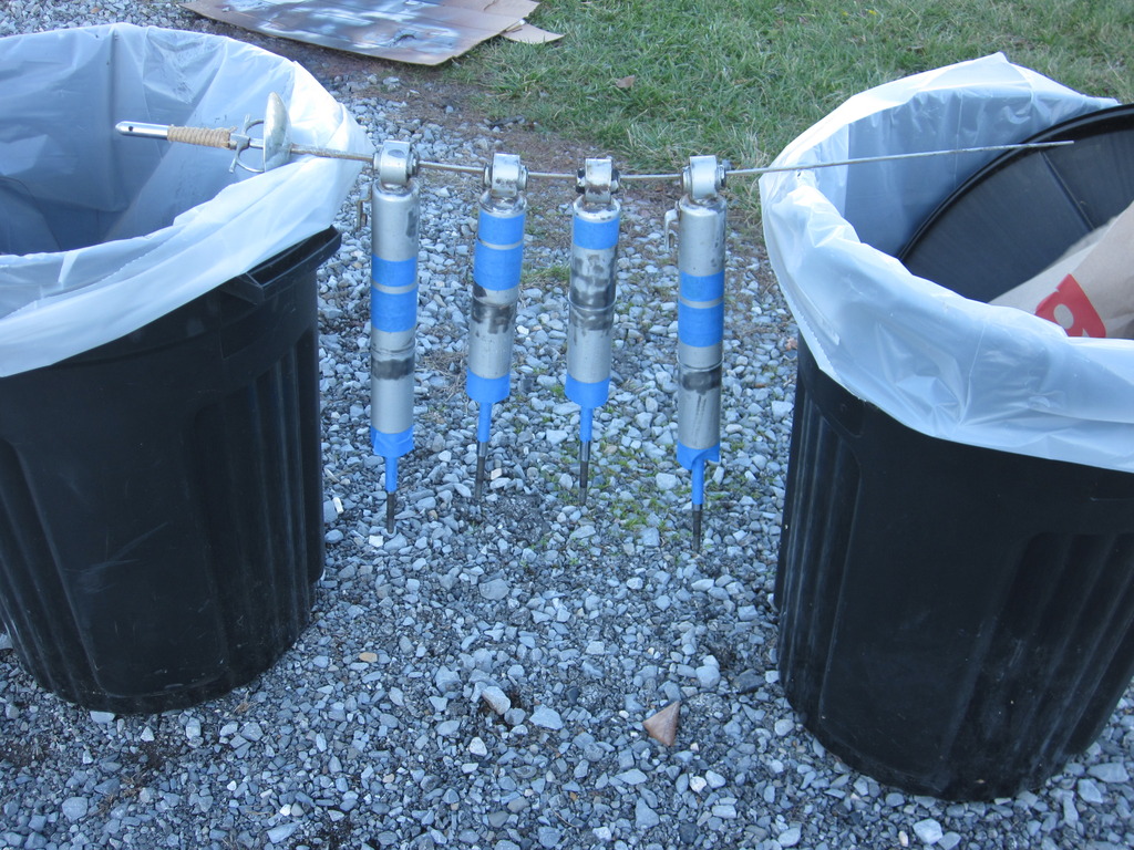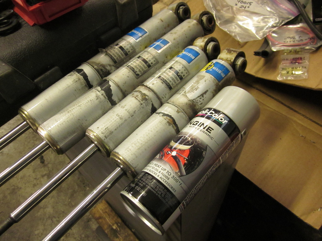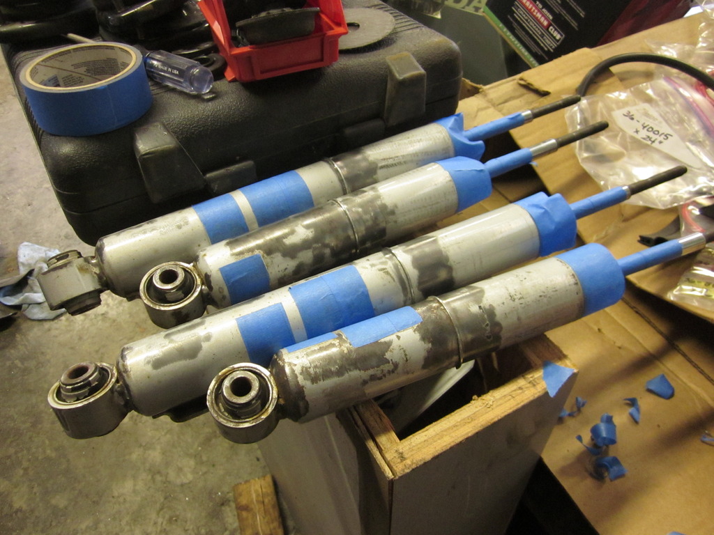 I started by diassembling the struts, and cleaning them up. I tried to save the original bilstein labels as best as I could, I only couldn't save one sticker.