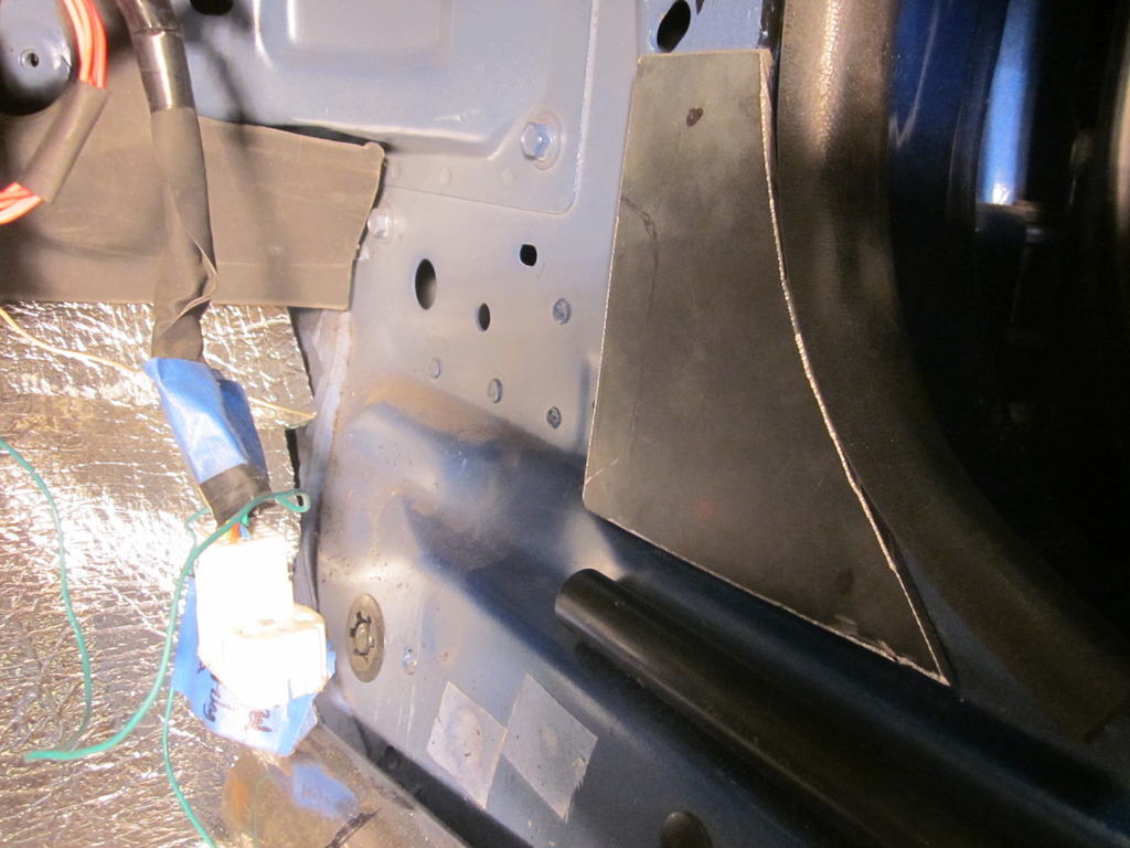 That was the end for that night, and I'll chalk that one up to temporary insanity because it would be foolish to not put the door bars in. So the next day I regrouped and went to work. I'm not sure how the fabworx bars mount, but I had always though that location is best for mounting, so I went to work with my own style mounts. There is a little bit of a tack weld at this location I had to smooth off, but other then that they were good to go.