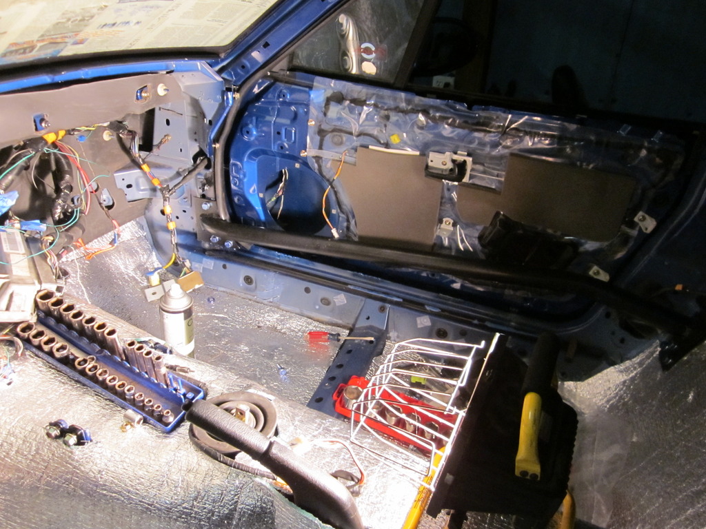 From there it was another time where I set with a beer in hand scratching my head and test fitting for a while, mostly over the door bars. I had my buddy that has a nice tube bender put a couple 15 degree bends in the end of my bars, but was still fighting them. Once my cup ran dry I decided that I did not want to mess with door bars getting in my door panels way, and possibly limiting leg room so I tossed those them out and put in the insulation throughout the floor and rear bulkhead.